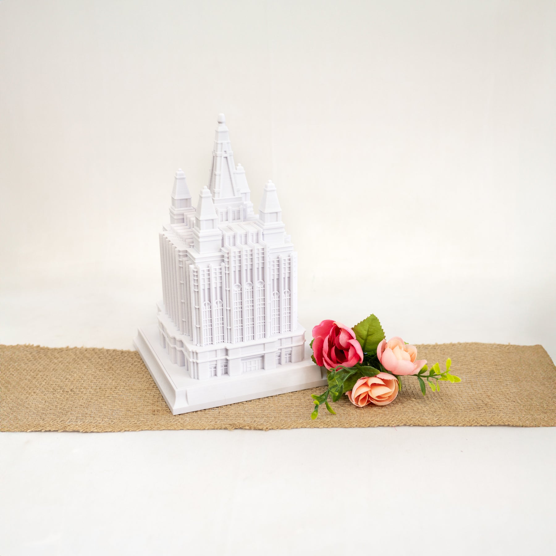 As designed, this temple features an Angel Moroni Statue and a miniature Angel Moroni will be included with your order of a medium, large, or extra large replica, or a music light. Small replicas are too small to successfully attach the miniature Angel Moroni.