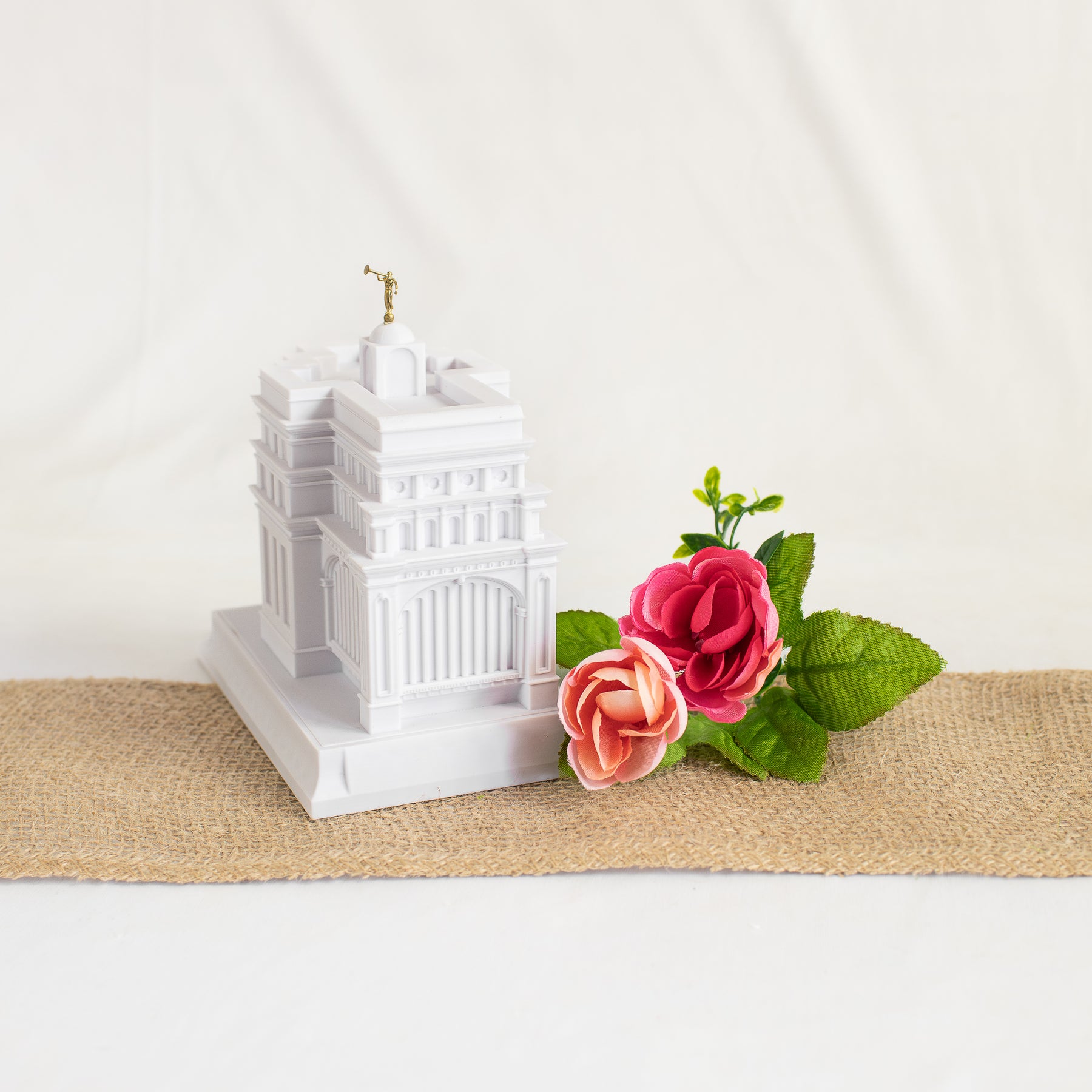 As designed, this temple features an Angel Moroni Statue and a miniature Angel Moroni will be included with your order of a medium, large, or extra large replica, or a music light. Small replicas are too small to successfully attach the miniature Angel Moroni.