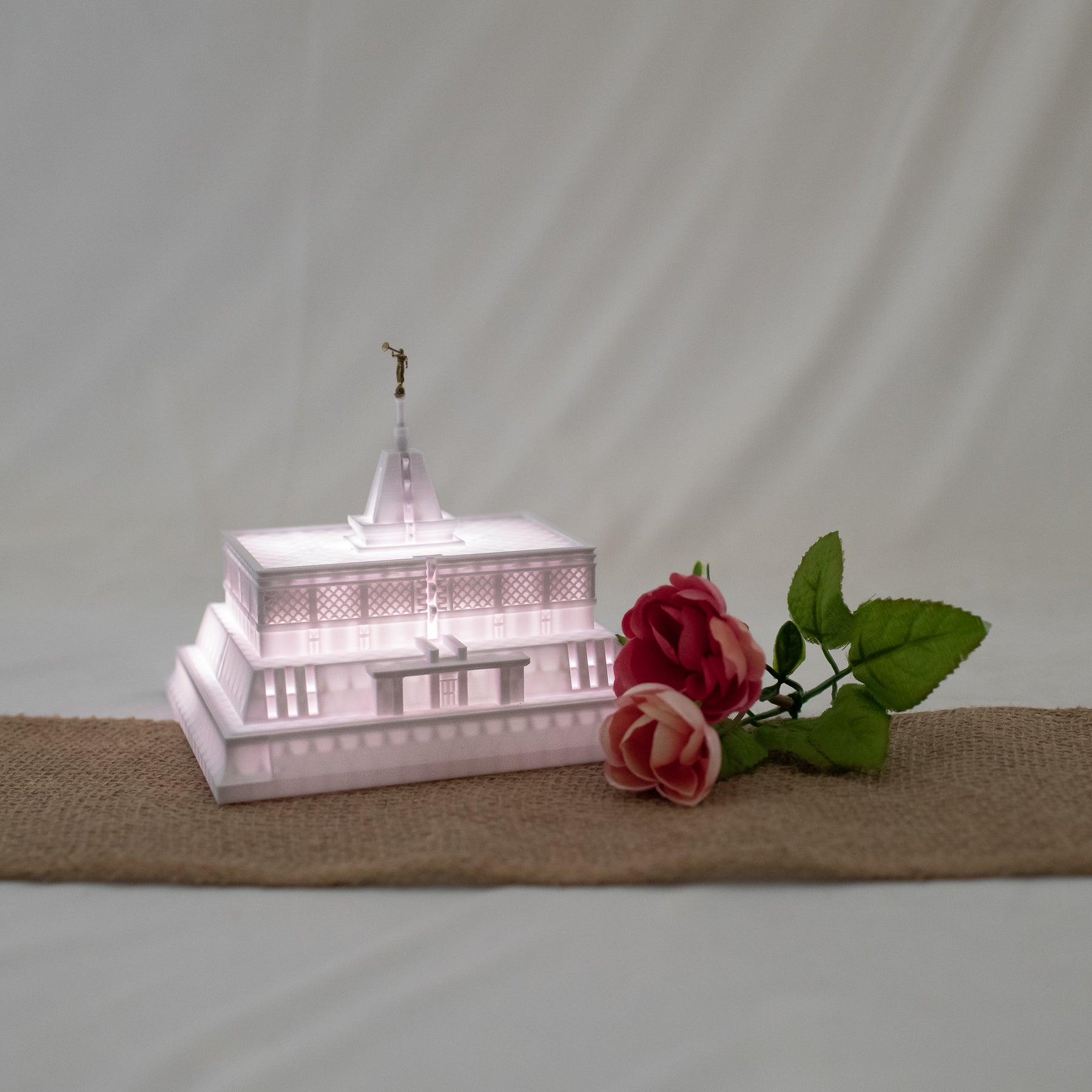 As designed, this temple features an Angel Moroni Statue and a miniature Angel Moroni will be included with your order of a medium, large, or extra large replica, or a music light. Small replicas are too small to successfully attach the miniature Angel Moroni.