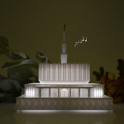 The only temple statue that lights up, plays music, and can be customized with an optional engraved plaque — handcrafted to bring the spirit of the temple into every home. Give a gift that lights their world and fills it with faith this Christmas season.