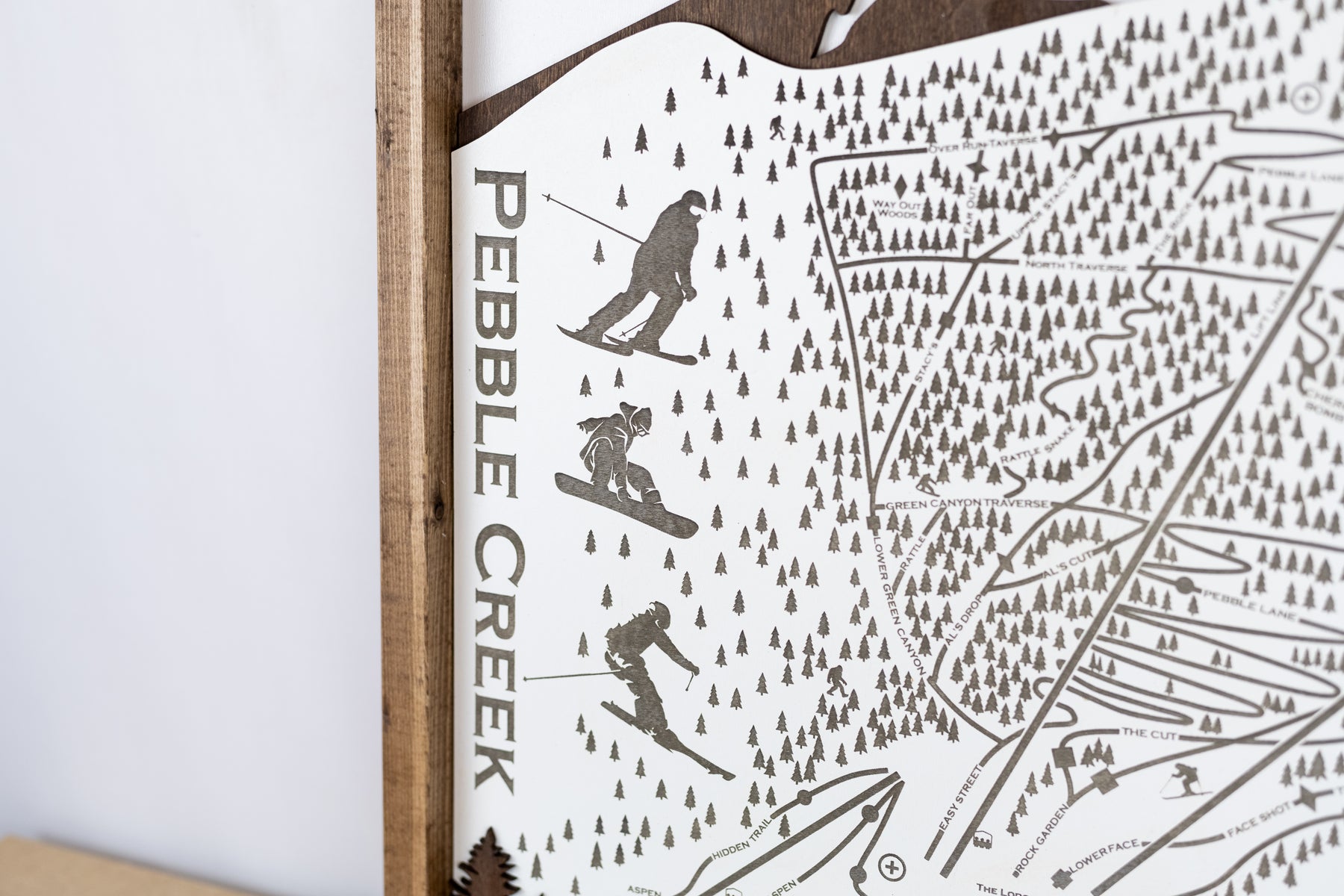 Perfect for skiers, snowboarders, and outdoor enthusiasts, this handcrafted wall art is an ideal way to commemorate unforgettable runs at Pebble Creek.