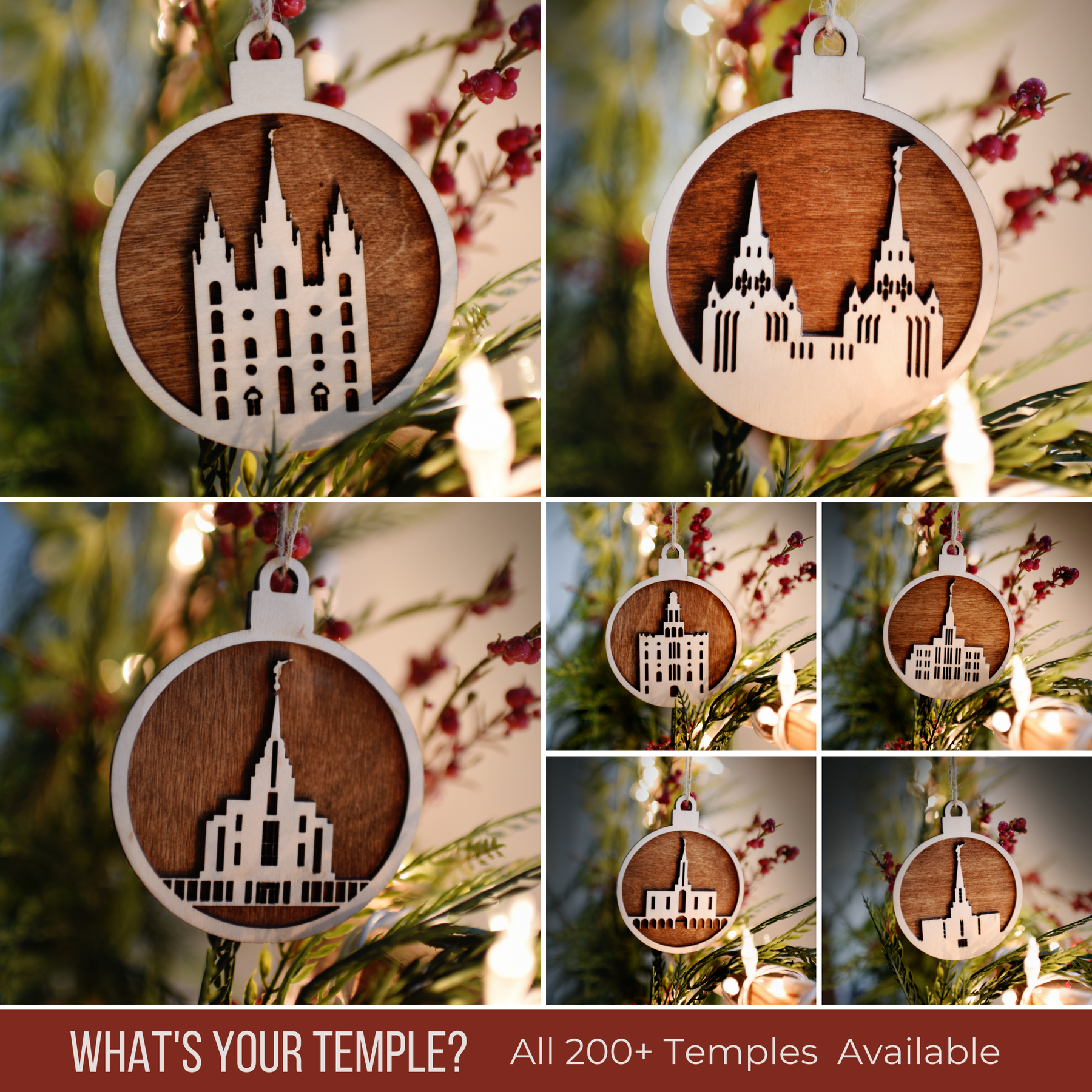 Our best selling rustic wooden temple ornaments now available in a 12-set. Choose 12 of your favorite temple or mix and match any temple worldwide. All 300+ temples available.