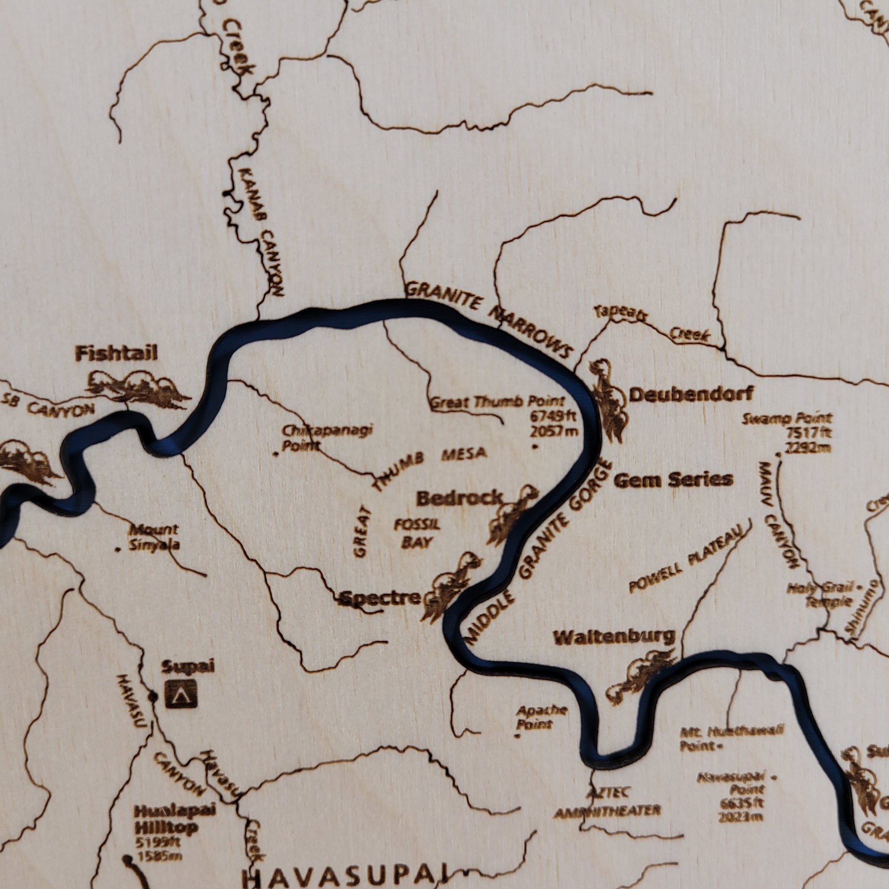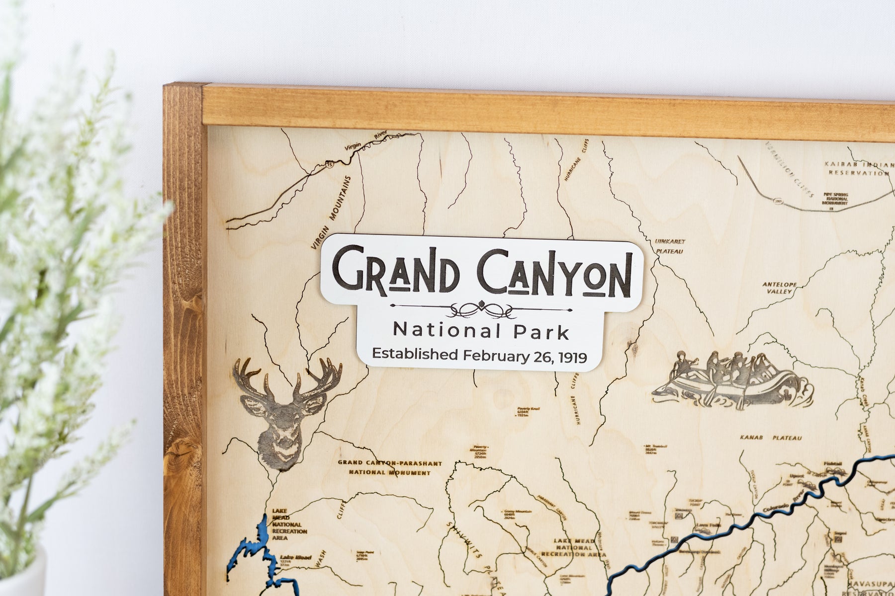 Grand Canyon Topo Map Sign | Laser Engraved & Framed Wall Art