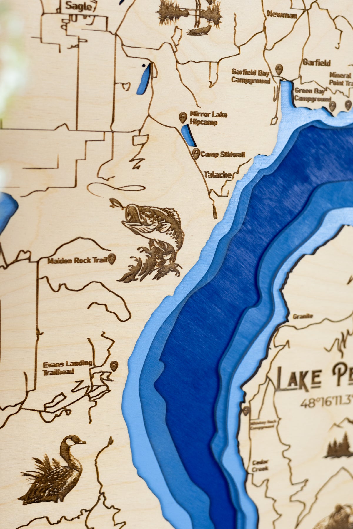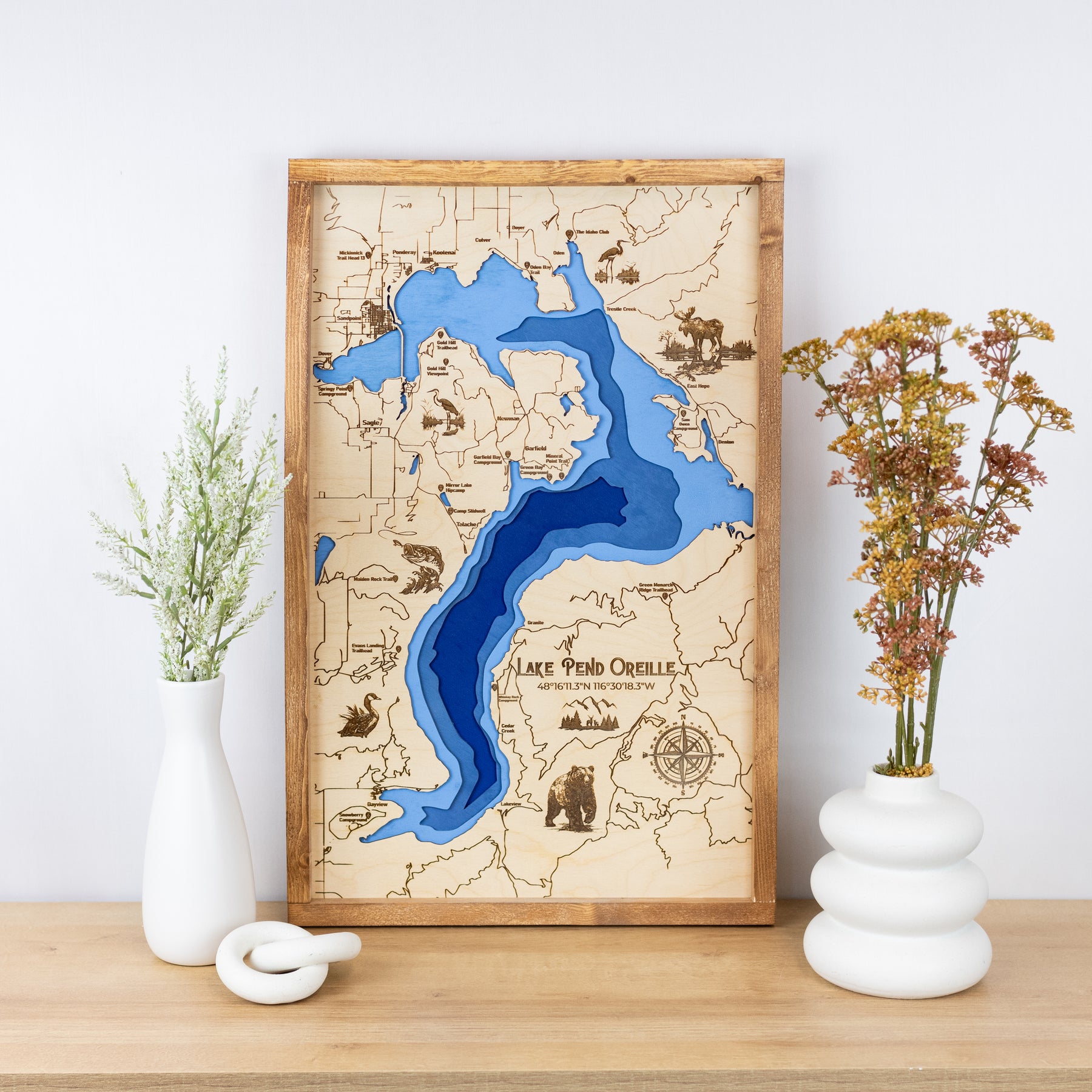 Perfect for boaters, anglers, and outdoor enthusiasts, this handcrafted wooden sign brings the majestic waters of Lake Pend Oreille into your space.