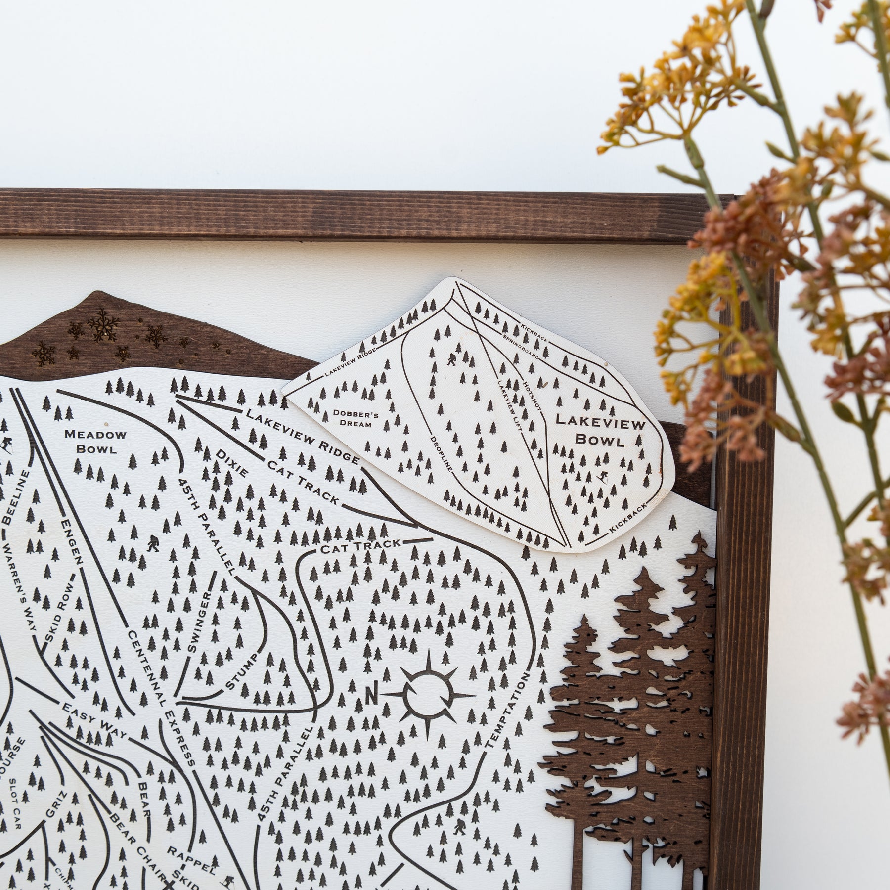 Brundage Mountain Ski Resort Map Sign | Laser Engraved & Framed Wall Art