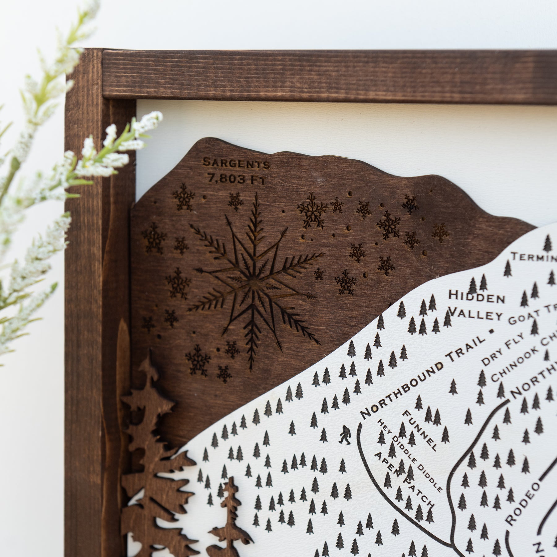 Expertly crafted from premium Baltic birch wood, this sign showcases intricate ski runs, lift details, and mountain topography. The natural woodgrain adds warmth, while the dark-stained frame and precision engraving give it a rustic yet modern aesthetic, making it the perfect decor for any ski lodge, cabin, or home.
