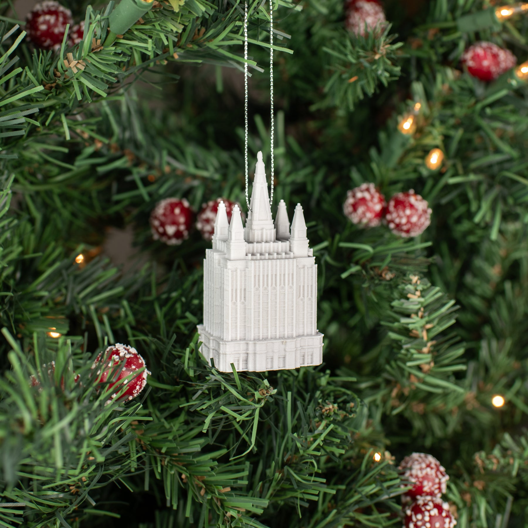 Imagine enjoying the warmth of rich hot cocoa by the fire while the sound of carols fill the air. You catch a glimpse of your favorite Temple Christmas Ornament hanging in the midst of twinkling lights on your fresh-cut Christmas tree. This elegant ornament reminds you to hold your loved ones close and to return to the temple often because families can be together forever.