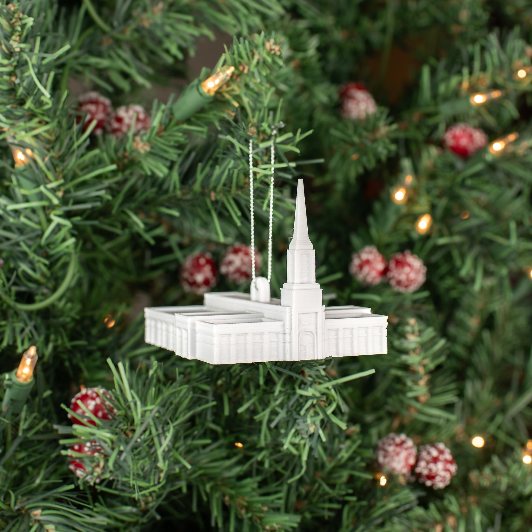 Material: Each temple ornament is meticulously 3D printed over 4 hours from Temple White PLA: a lightweight, but durable and renewable plastic.