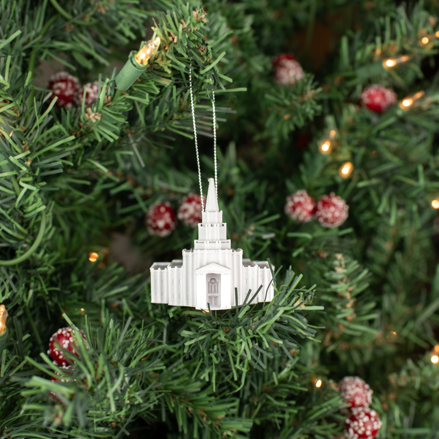 Material: Each temple ornament is meticulously 3D printed over 4 hours from Temple White PLA: a lightweight, but durable and renewable plastic.