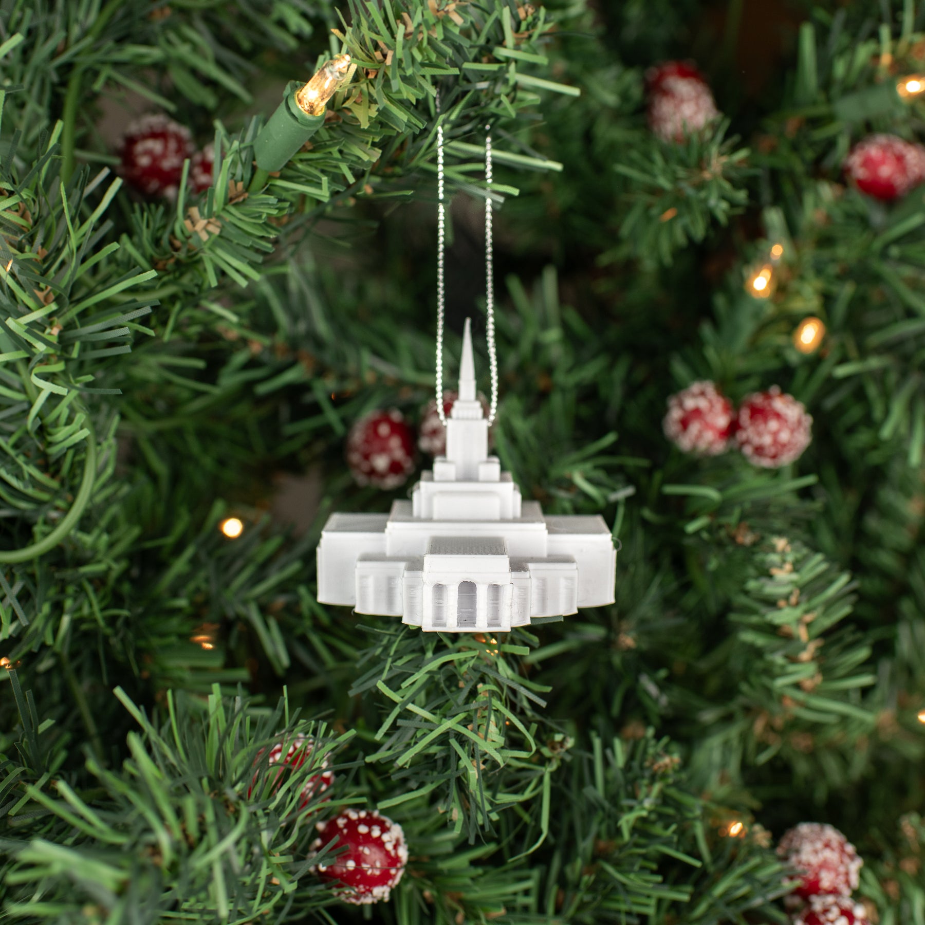 Material: Each temple ornament is meticulously 3D printed over 4 hours from Temple White PLA: a lightweight, but durable and renewable plastic.