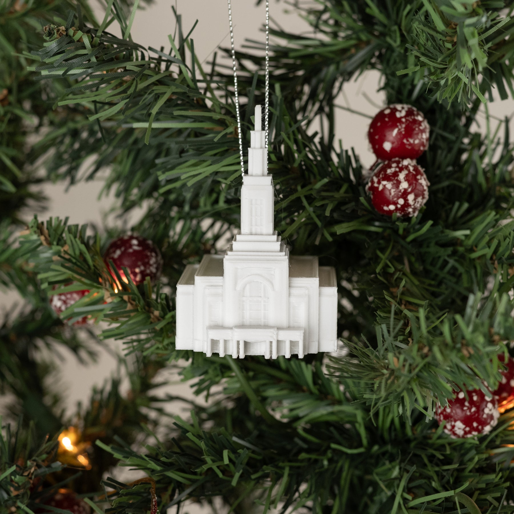 Material: Each temple ornament is meticulously 3D printed over 4 hours from Temple White PLA: a lightweight, but durable and renewable plastic.