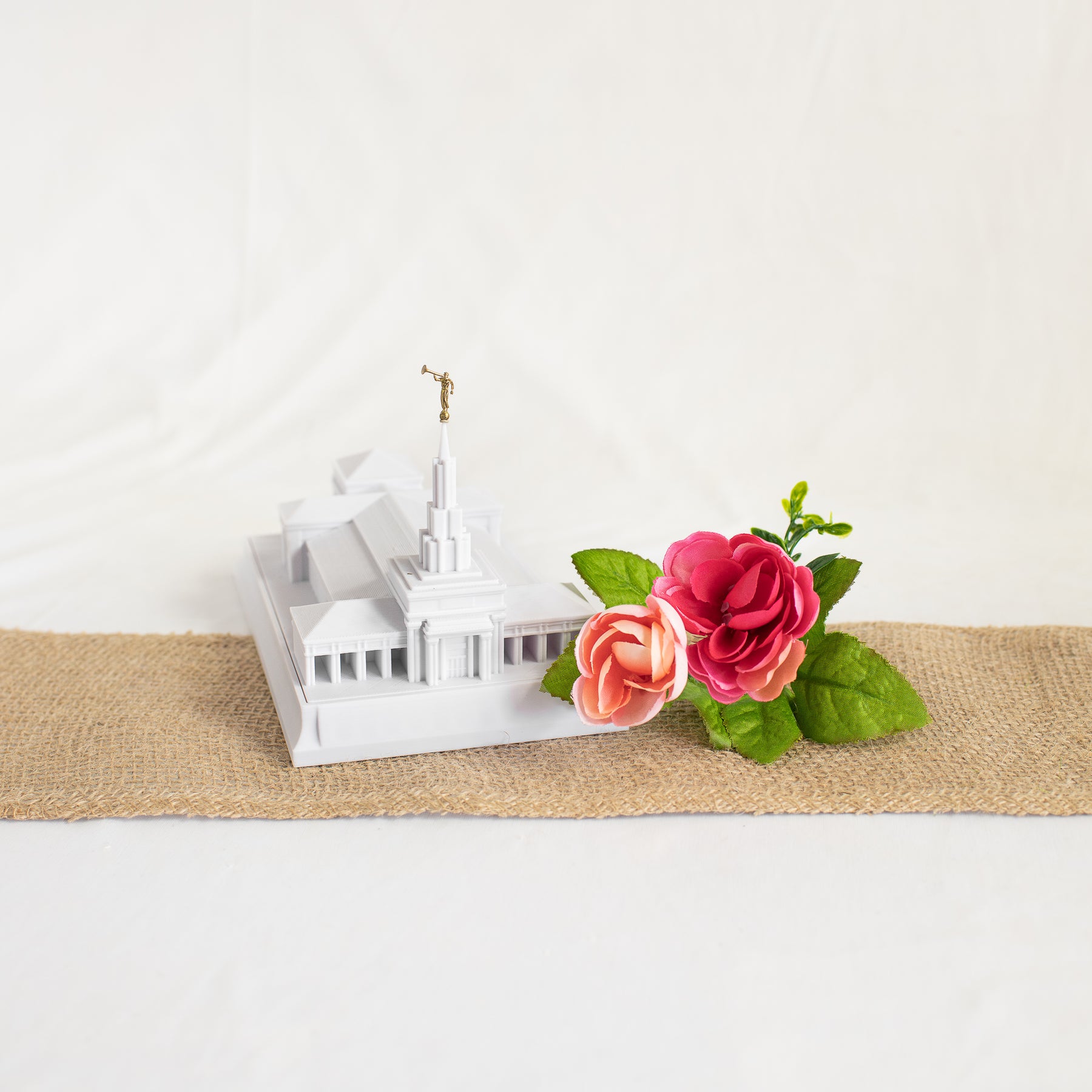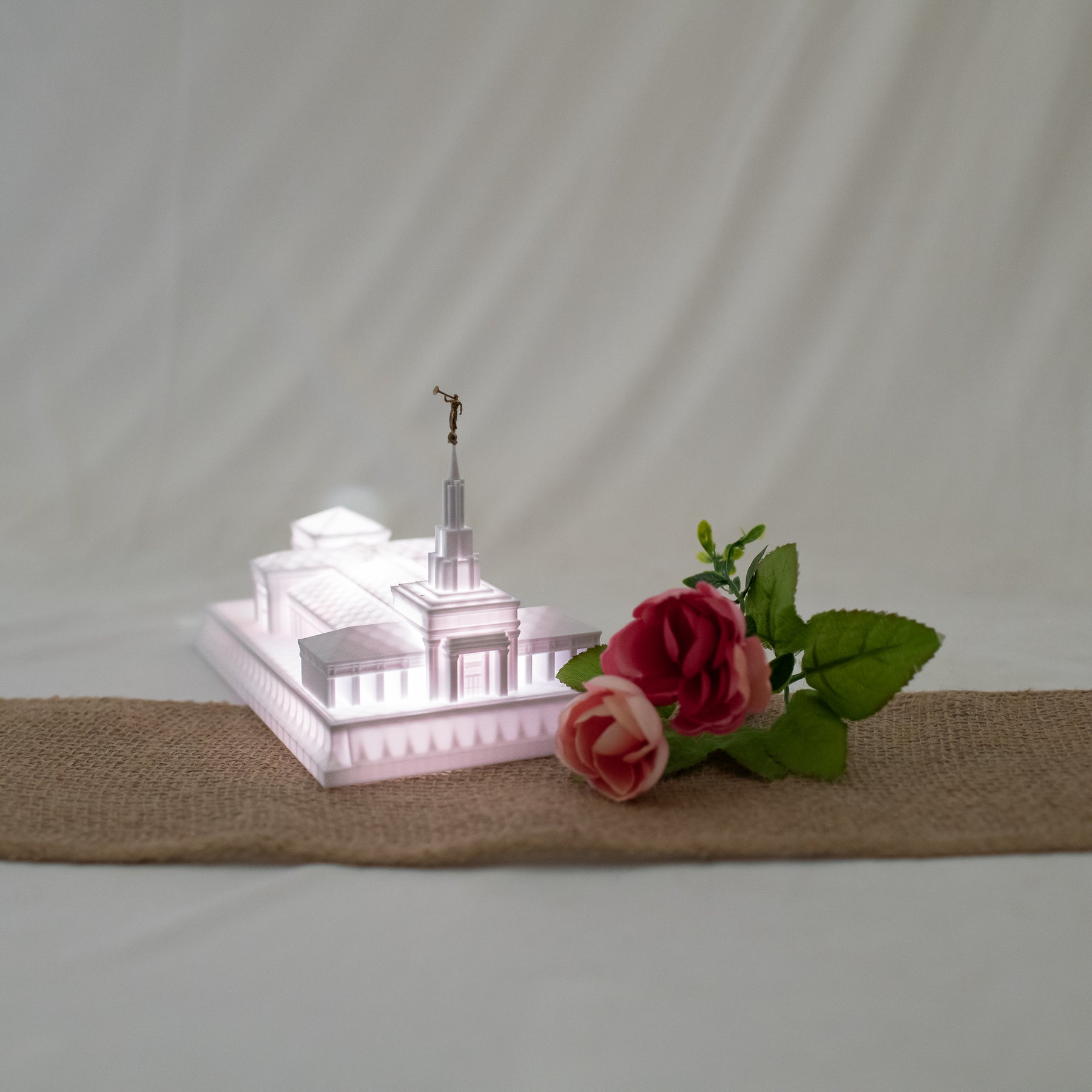 As designed, this temple features an Angel Moroni Statue and a miniature Angel Moroni will be included with your order of a medium, large, or extra large replica, or a music light. Small replicas are too small to successfully attach the miniature Angel Moroni.