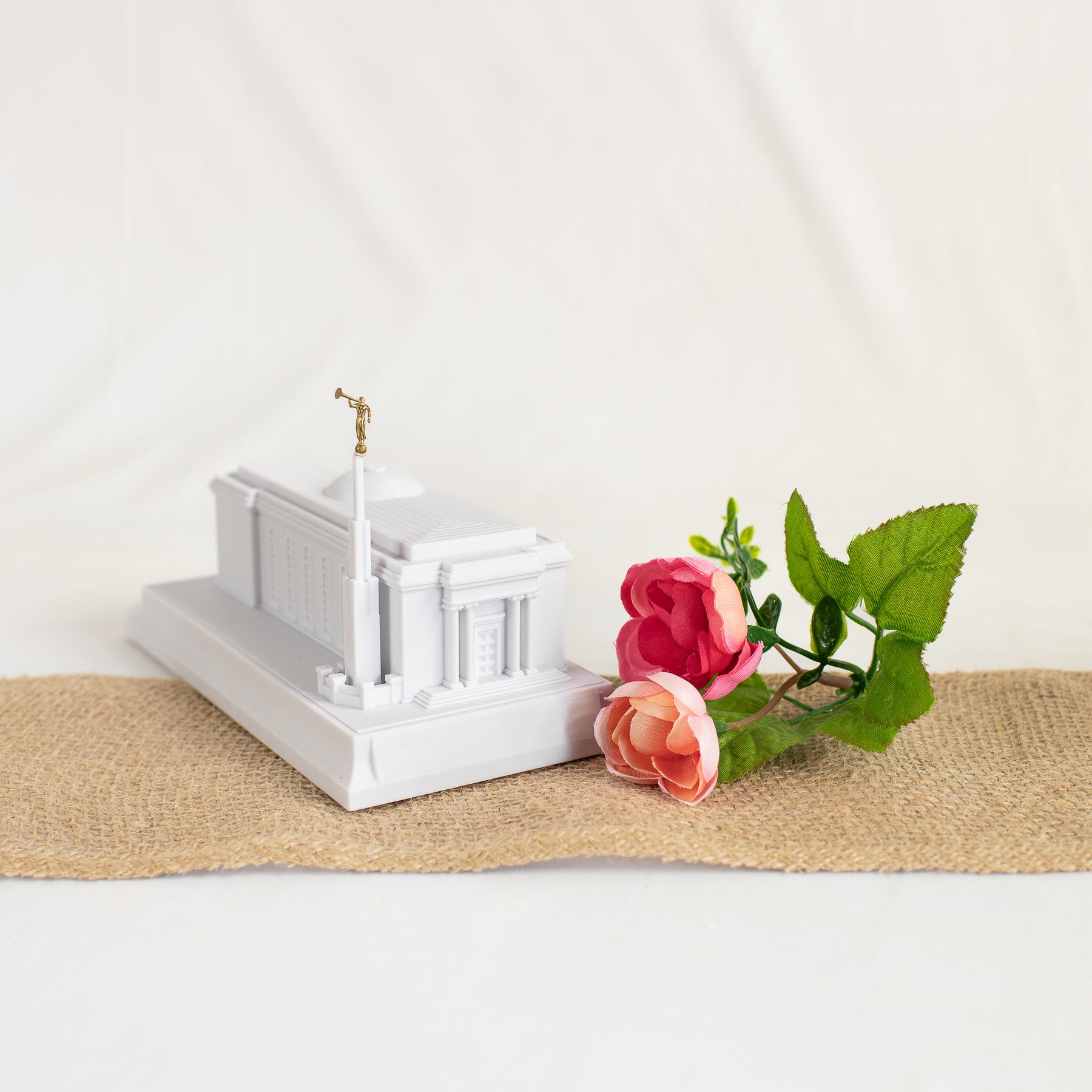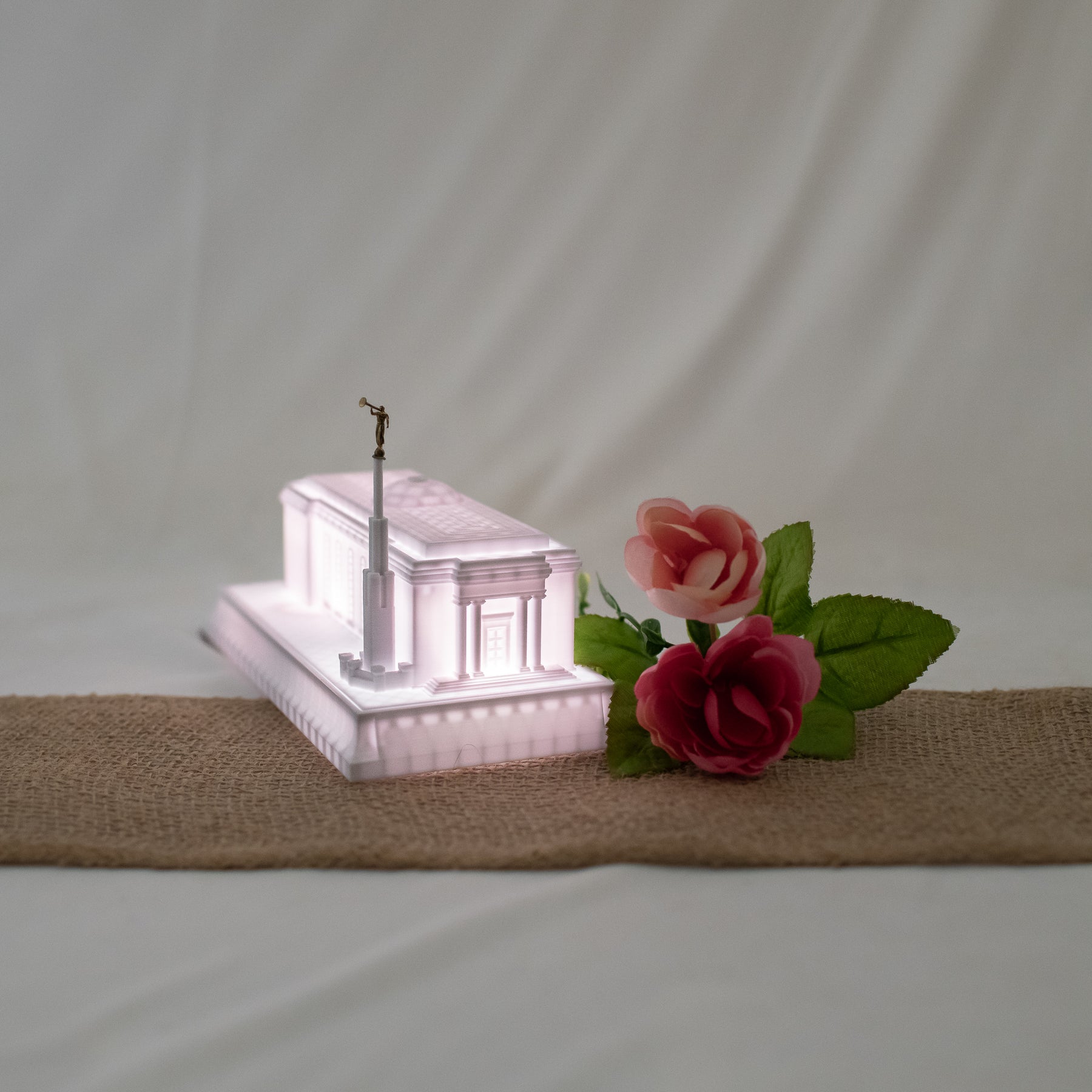 As designed, this temple features an Angel Moroni Statue and a miniature Angel Moroni will be included with your order of a medium, large, or extra large replica, or a music light. Small replicas are too small to successfully attach the miniature Angel Moroni.