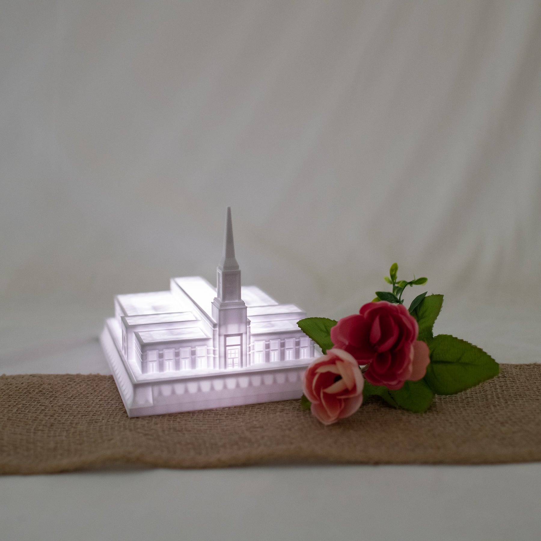 As designed, this temple features an Angel Moroni Statue and a miniature Angel Moroni will be included with your order of a medium, large, or extra large replica, or a music light. Small replicas are too small to successfully attach the miniature Angel Moroni.
