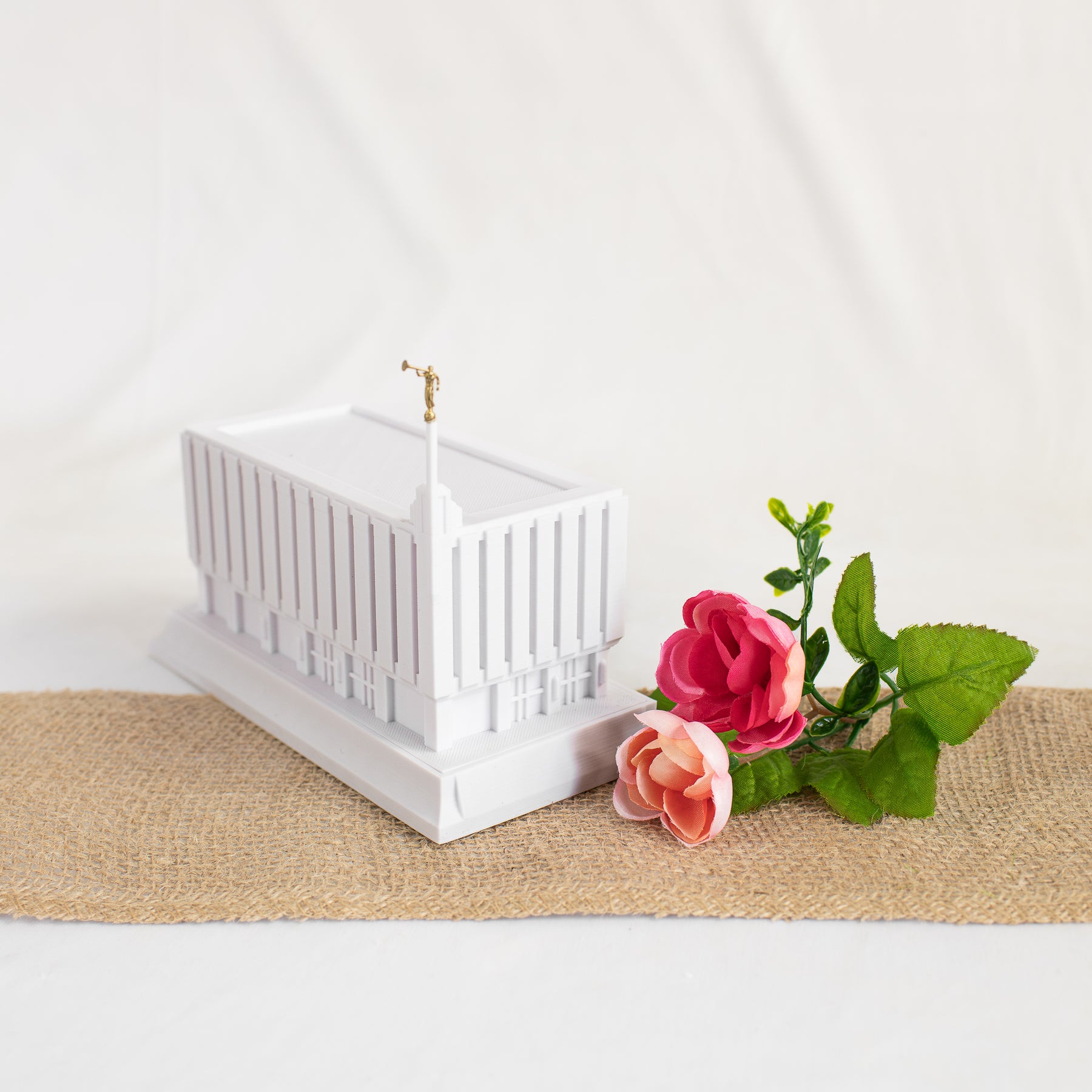 As designed, this temple features an Angel Moroni Statue and a miniature Angel Moroni will be included with your order of a medium, large, or extra large replica, or a music light. Small replicas are too small to successfully attach the miniature Angel Moroni.
