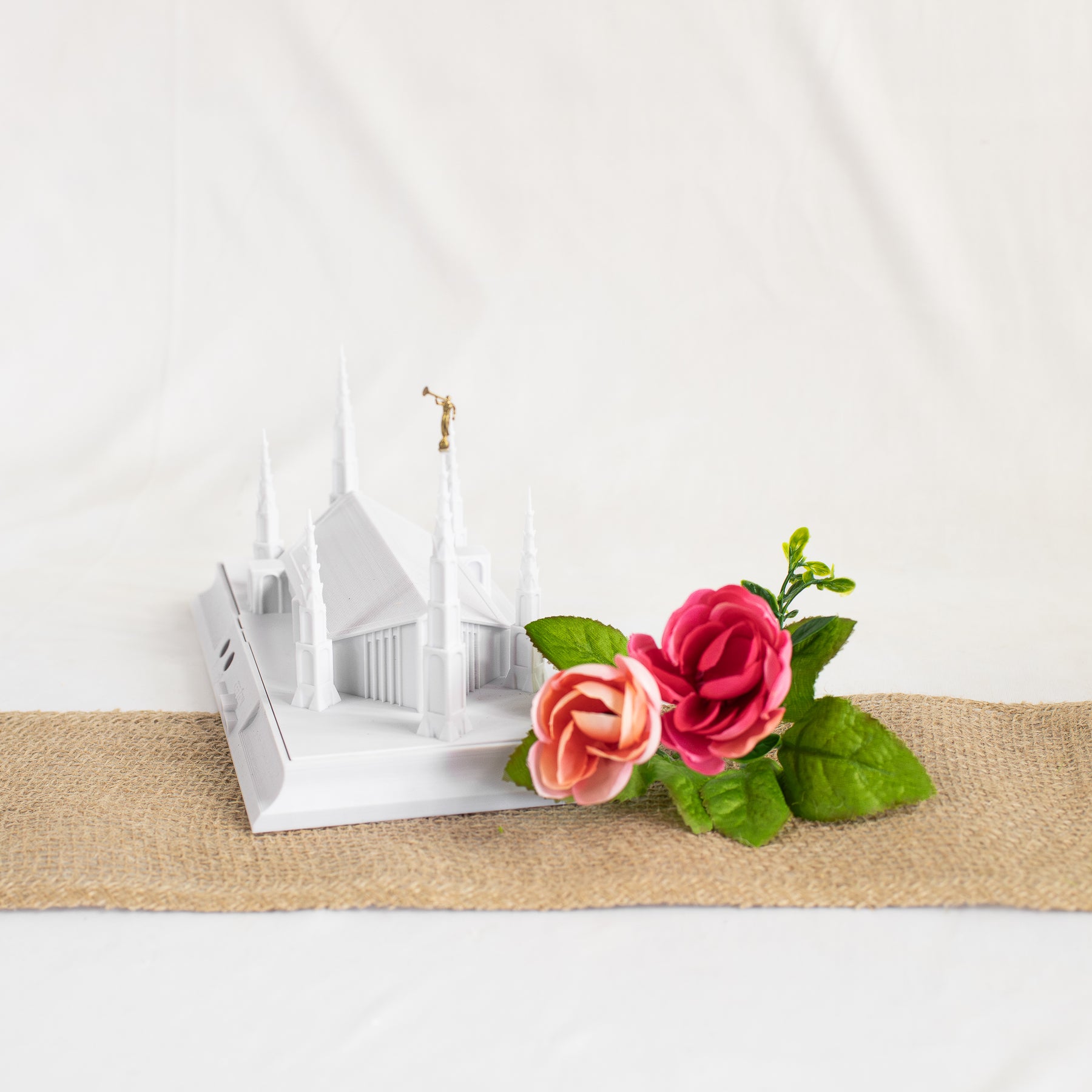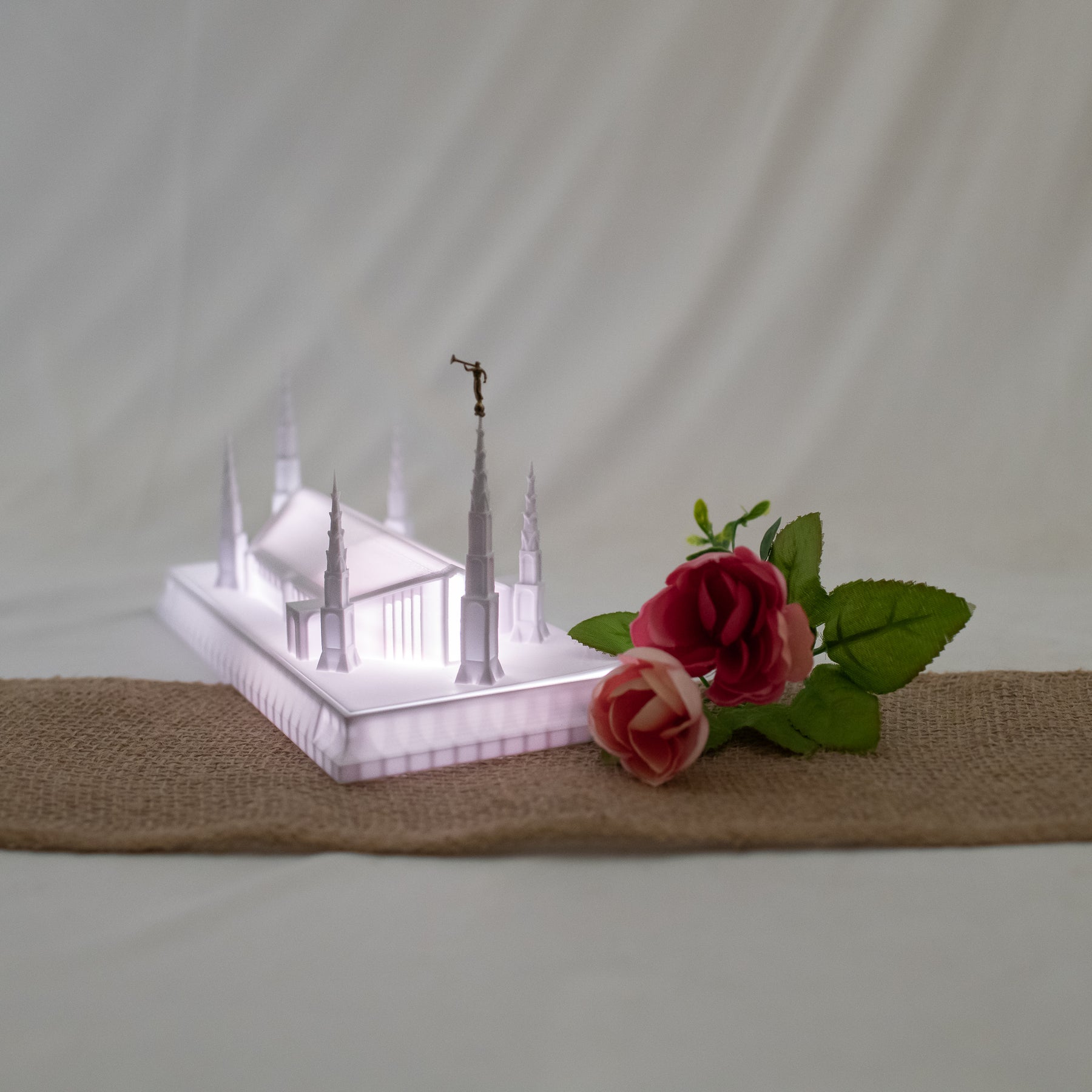 As designed, this temple features an Angel Moroni Statue and a miniature Angel Moroni will be included with your order of a medium, large, or extra large replica, or a music light. Small replicas are too small to successfully attach the miniature Angel Moroni.