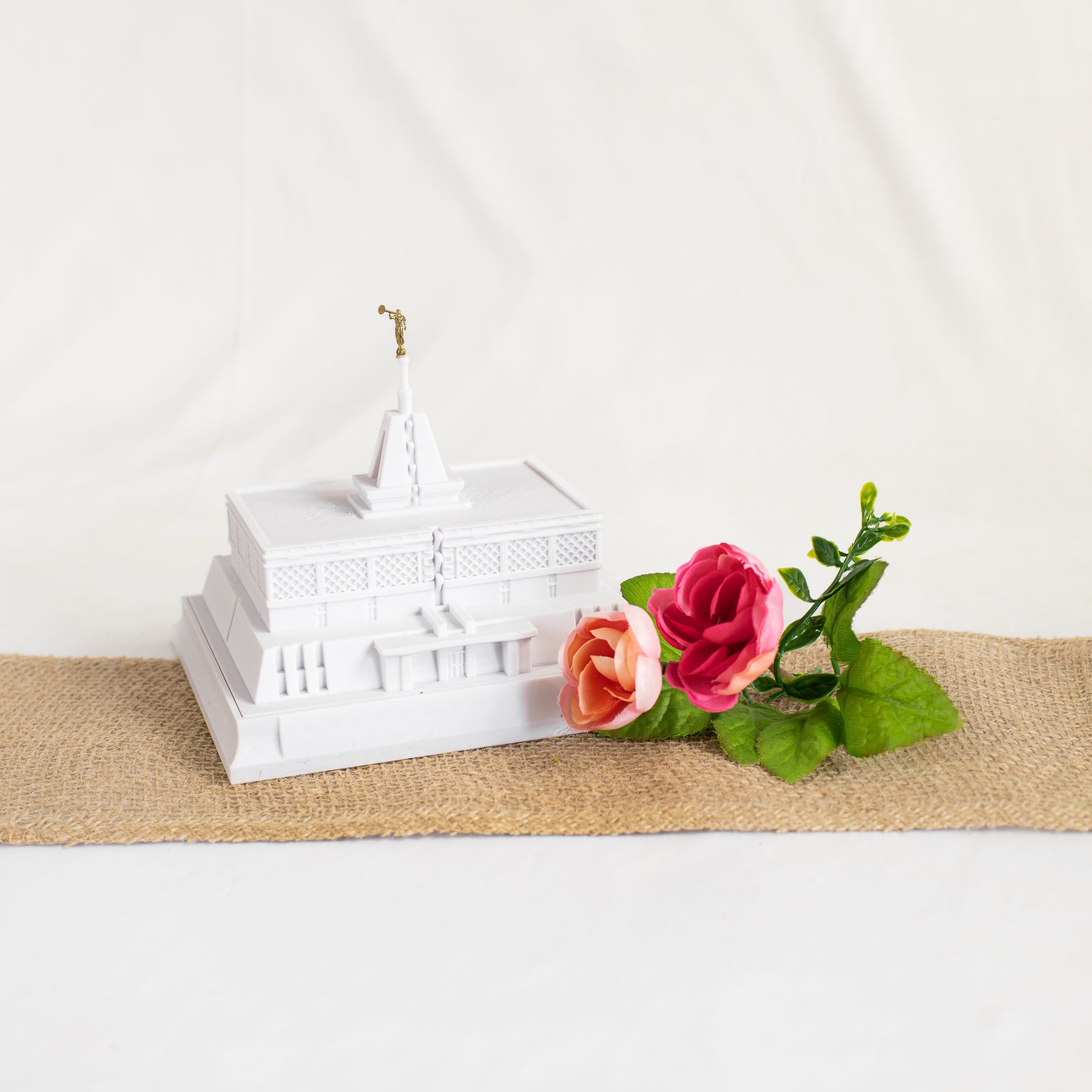As designed, this temple features an Angel Moroni Statue and a miniature Angel Moroni will be included with your order of a medium, large, or extra large replica, or a music light. Small replicas are too small to successfully attach the miniature Angel Moroni.