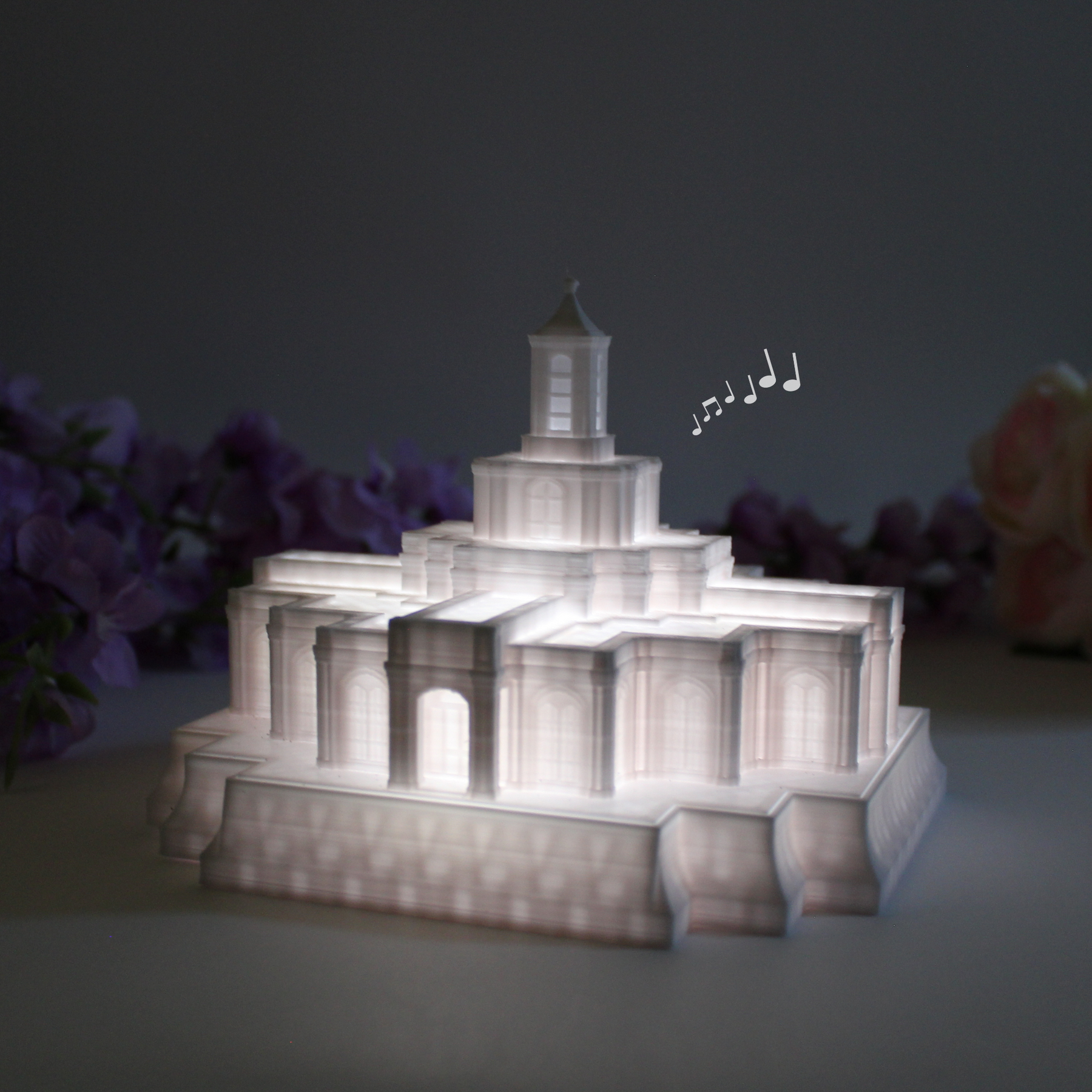 The Moses Lake Washington Temple Music Light is sure to catch every eye and ear in your home. With the press of a button watch as eager children and even adults draw near to take a closer look. They'll listen closely as the enchanting hymn or primary song reminds them that families are eternal. Purchase for yourself and give as a gift to every family member this Christmas and watch as the temple and the principle of eternal families is more deeply engraved upon their hearts.