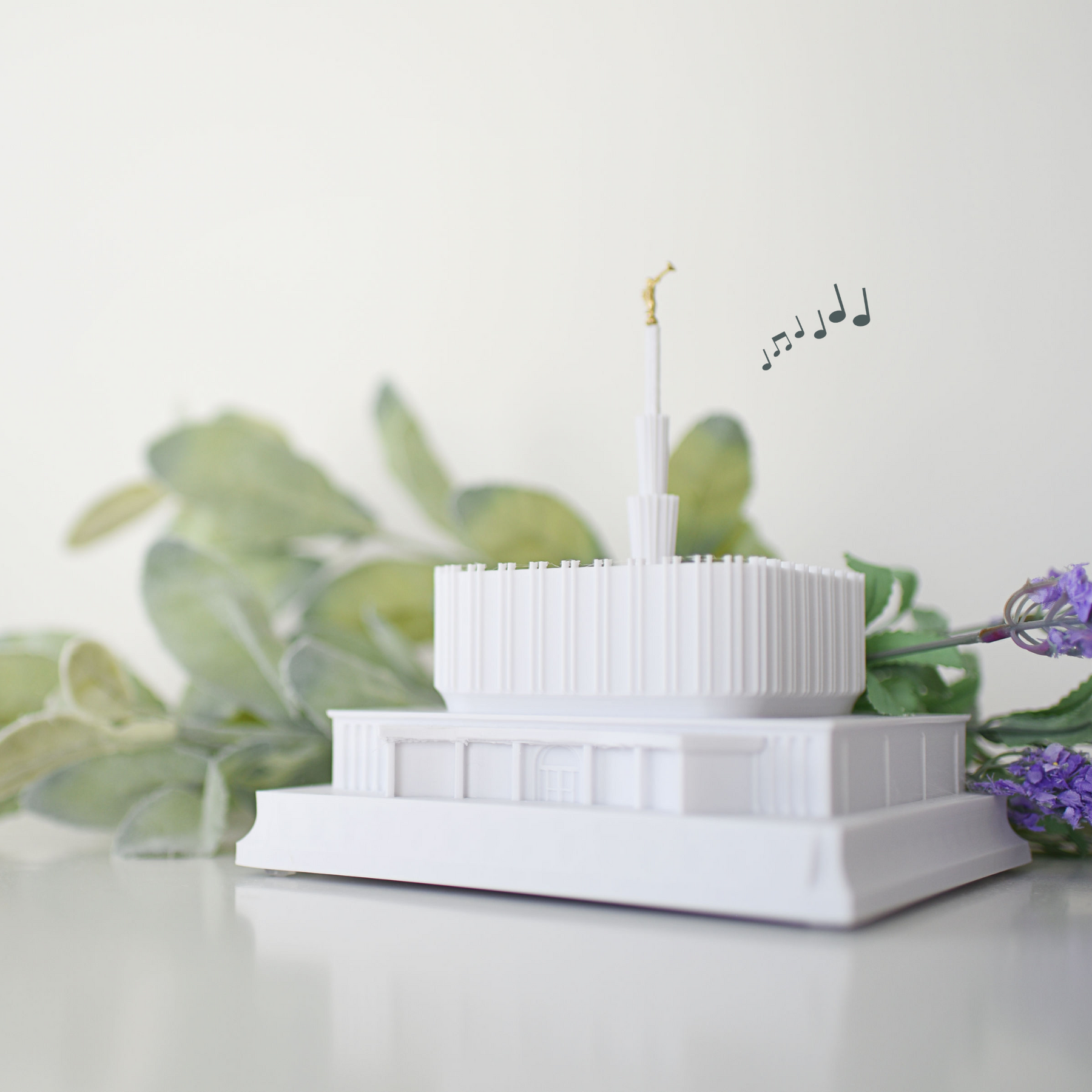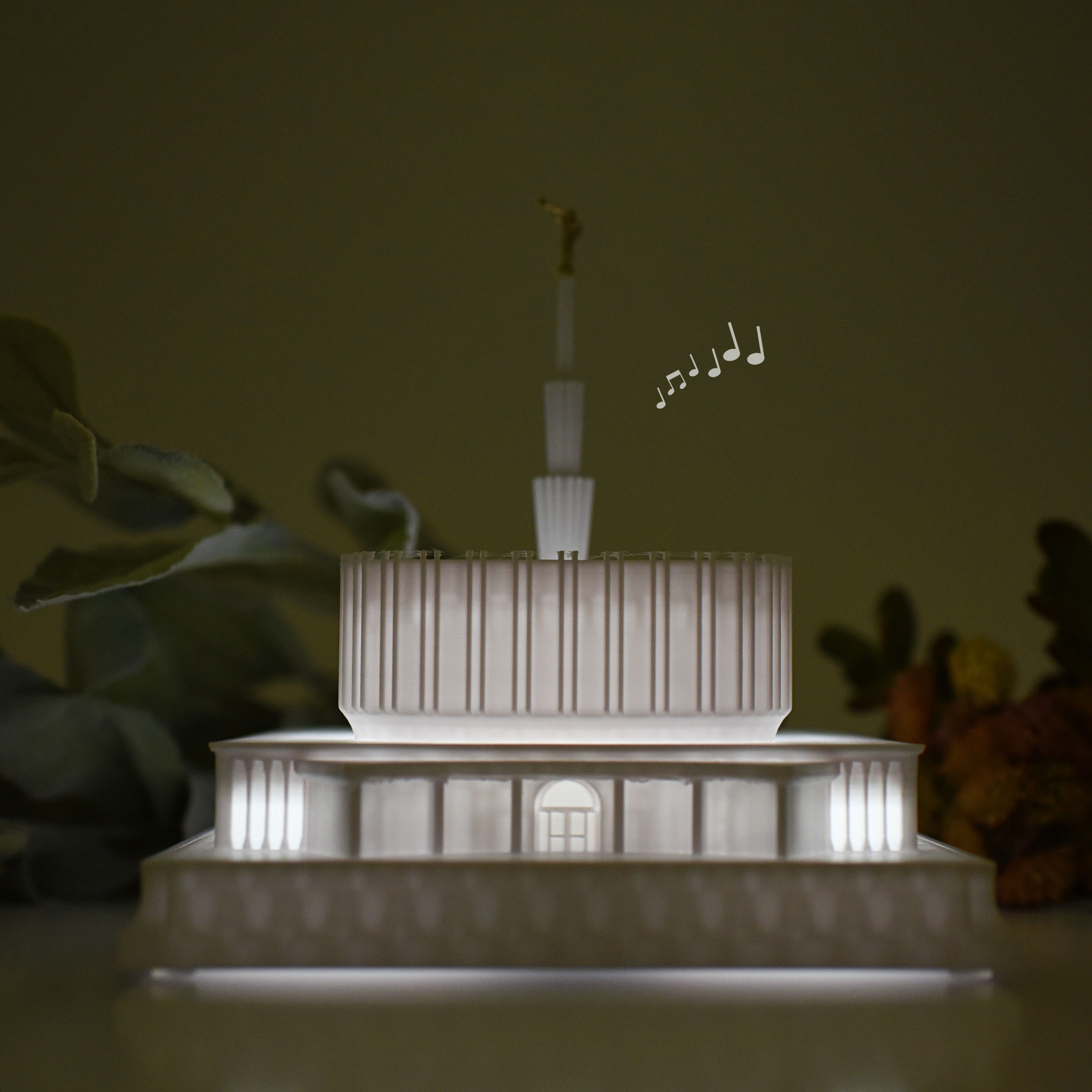 As designed, this temple features an Angel Moroni Statue and a miniature Angel Moroni will be included with your order of a medium, large, or extra large replica, or a music light. Small replicas are too small to successfully attach the miniature Angel Moroni.