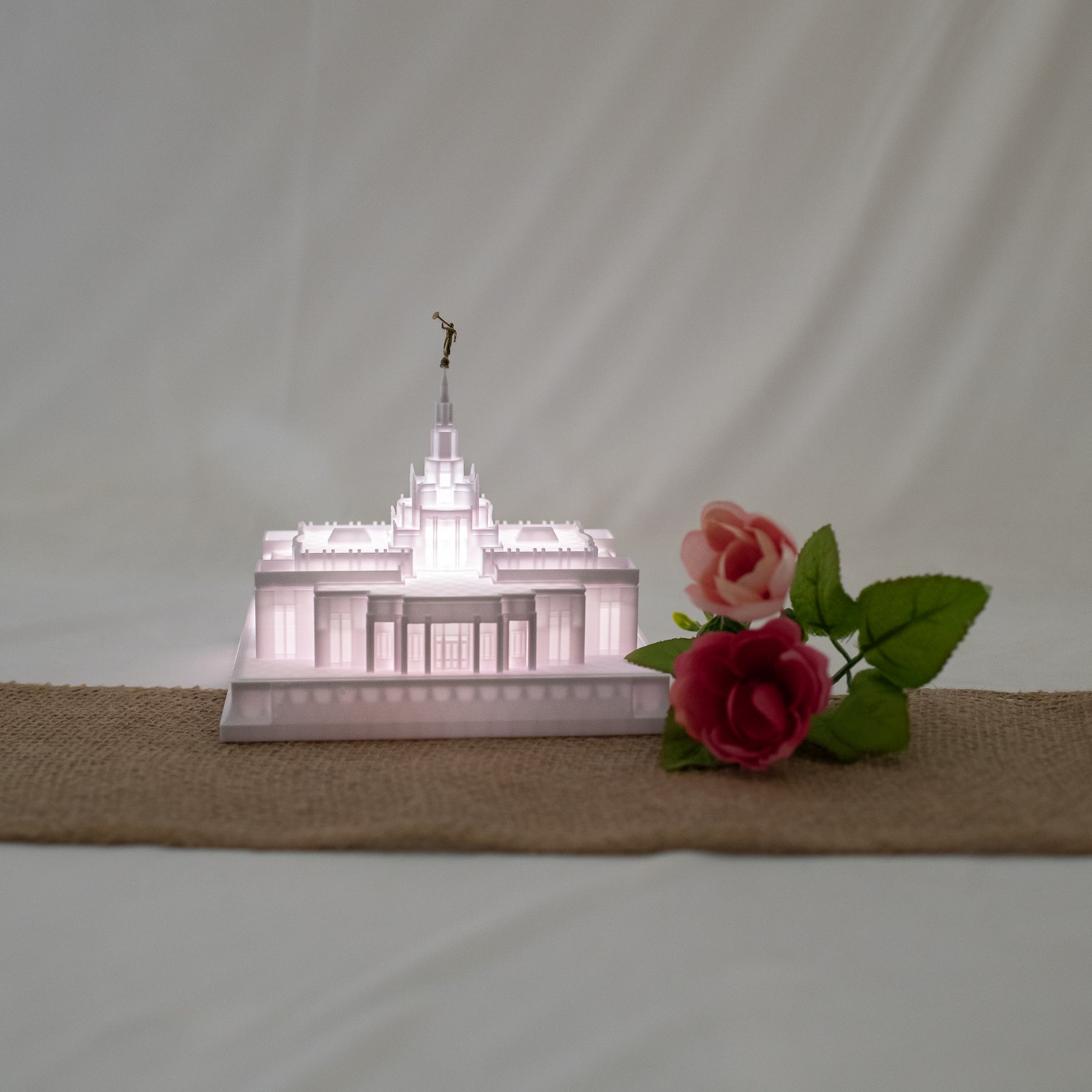 As designed, this temple features an Angel Moroni Statue and a miniature Angel Moroni will be included with your order of a medium, large, or extra large replica, or a music light. Small replicas are too small to successfully attach the miniature Angel Moroni.