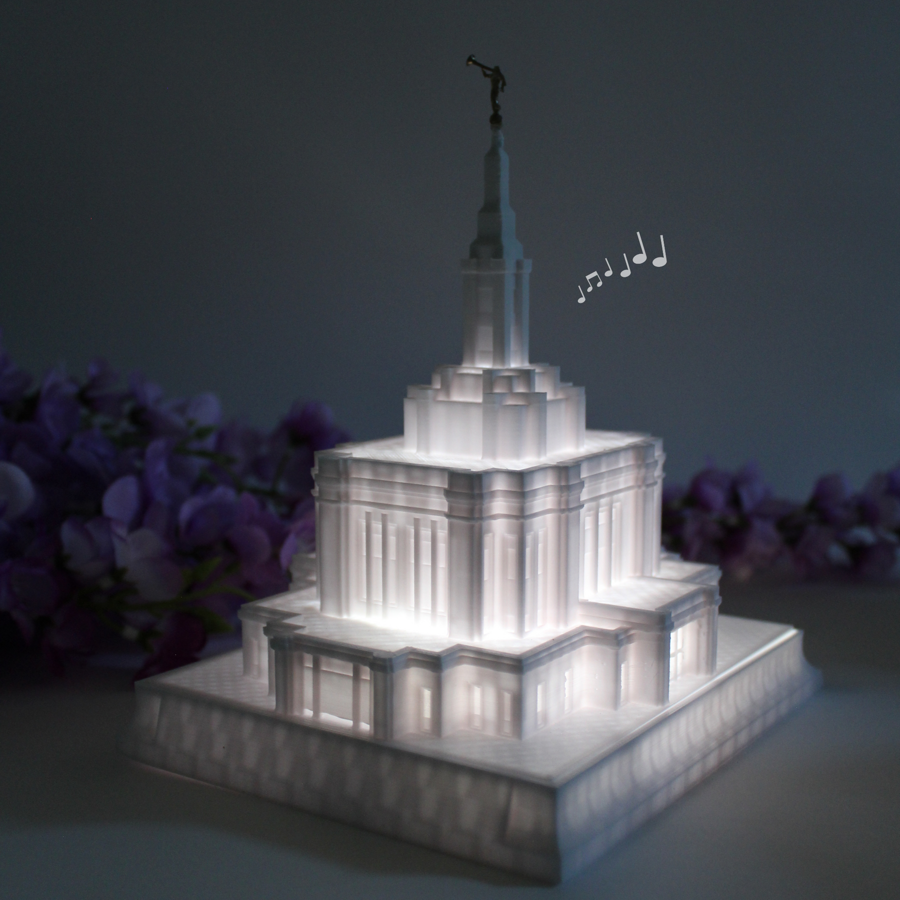 The Pocatello Idaho Temple Music Light is sure to catch every eye and ear in your home. With the press of a button watch as eager children and even adults draw near to take a closer look. They'll listen closely as the enchanting hymn or primary song reminds them that families are eternal. Purchase for yourself and give as a gift to every family member this Christmas and watch as the temple and the principle of eternal families is more deeply engraved upon their hearts.