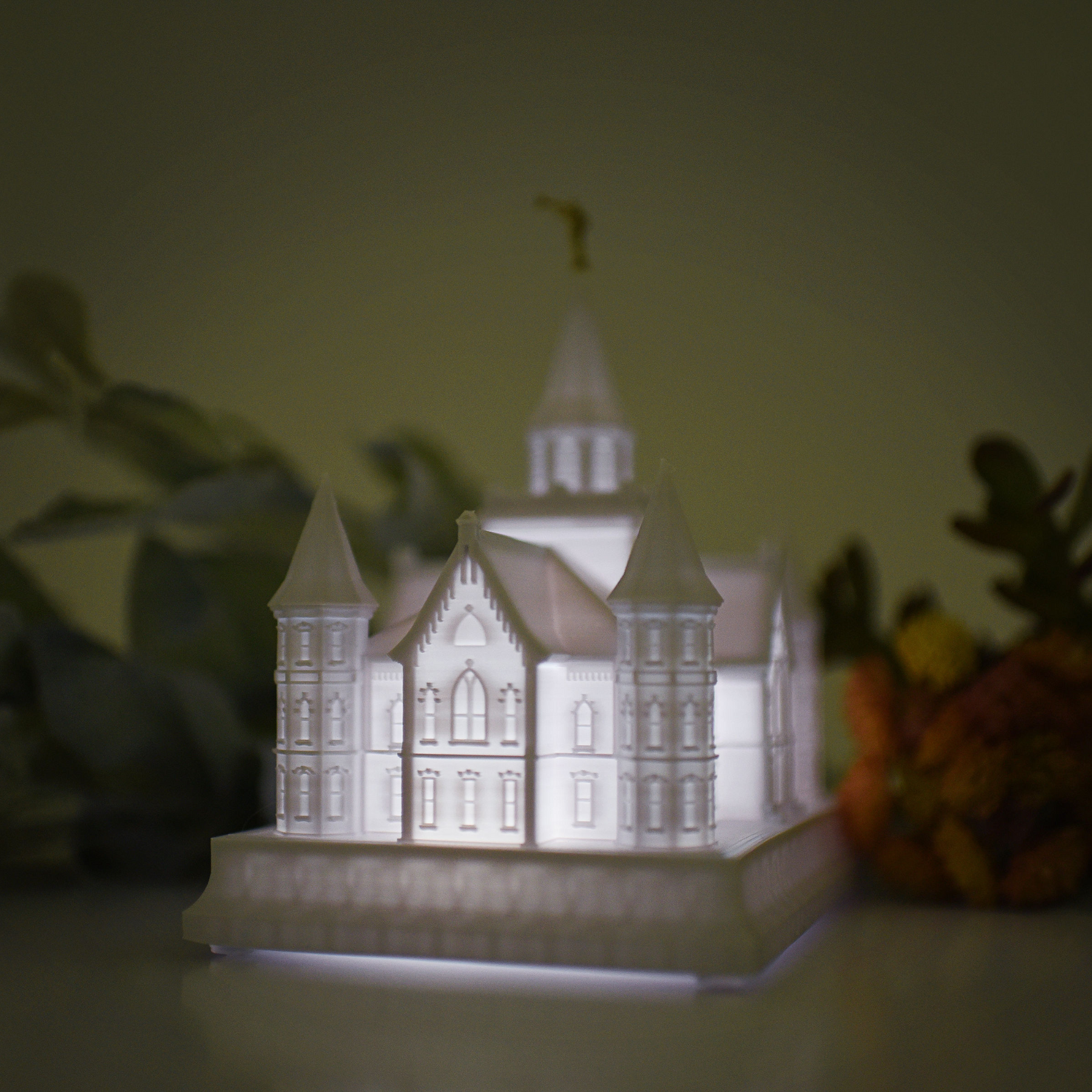 As designed, this temple features an Angel Moroni Statue and a miniature Angel Moroni will be included with your order of a medium, large, or extra large replica, or a music light. Small replicas are too small to successfully attach the miniature Angel Moroni.