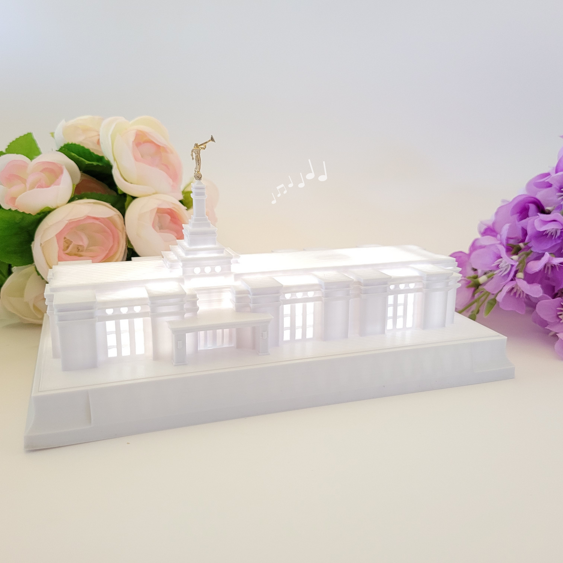 The Regina Saskatchewan Temple Music Light is sure to catch every eye and ear in your home. With the press of a button watch as eager children and even adults draw near to take a closer look. They'll listen closely as the enchanting hymn or primary song reminds them that families are eternal. Purchase for yourself and give as a gift to every family member this Christmas and watch as the temple and the principle of eternal families is more deeply engraved upon their hearts.