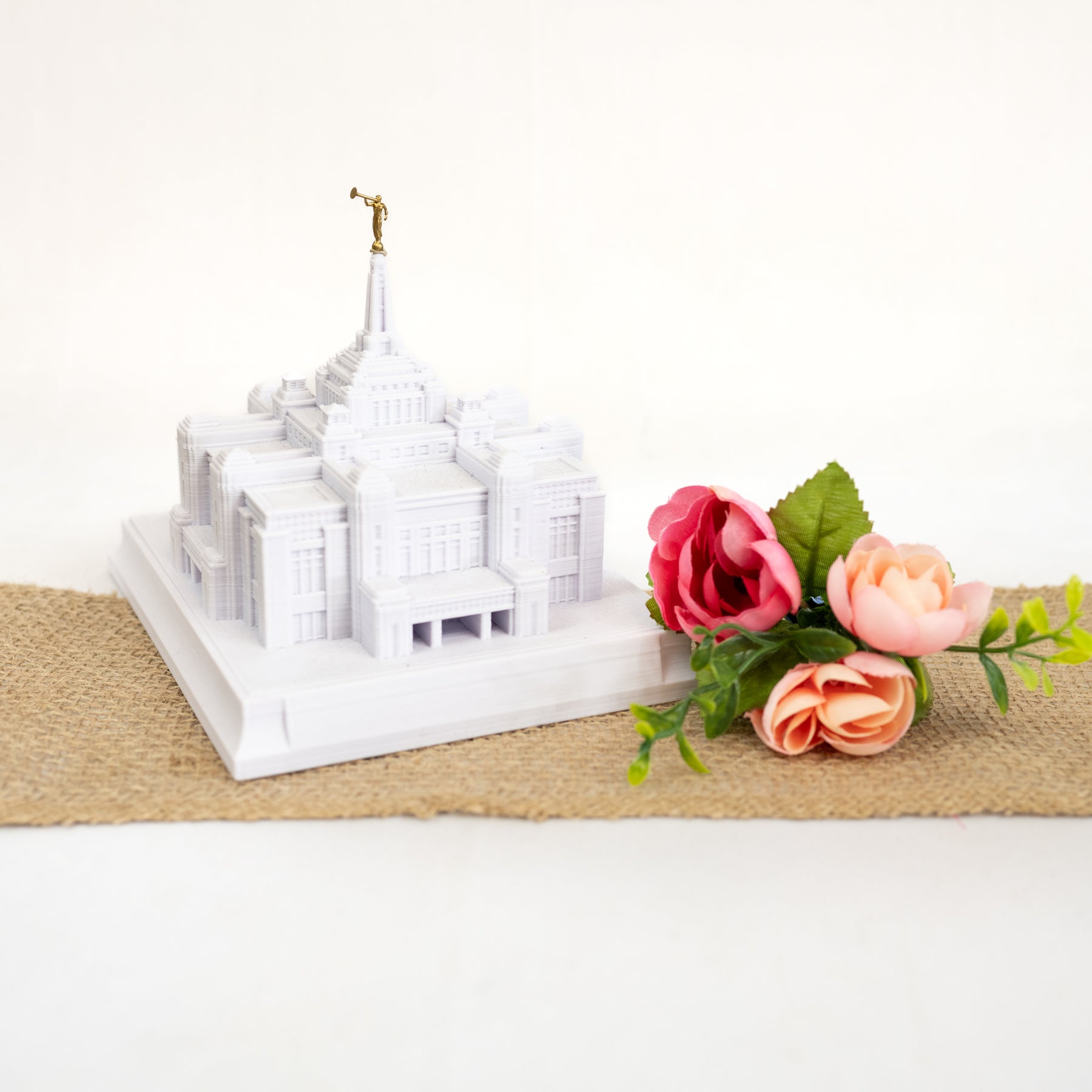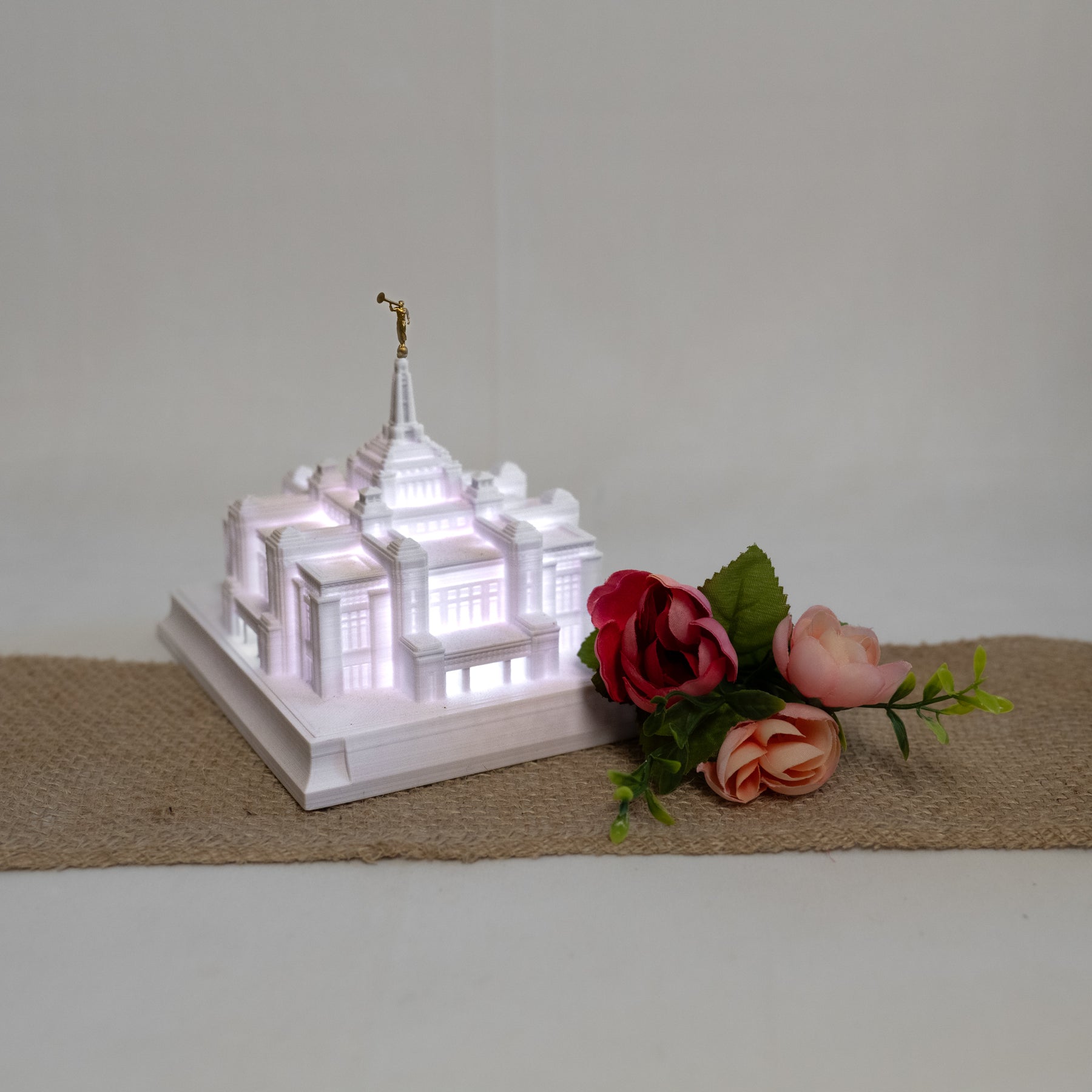 As designed, this temple features an Angel Moroni Statue and a miniature Angel Moroni will be included with your order of a medium, large, or extra large replica, or a music light. Small replicas are too small to successfully attach the miniature Angel Moroni.