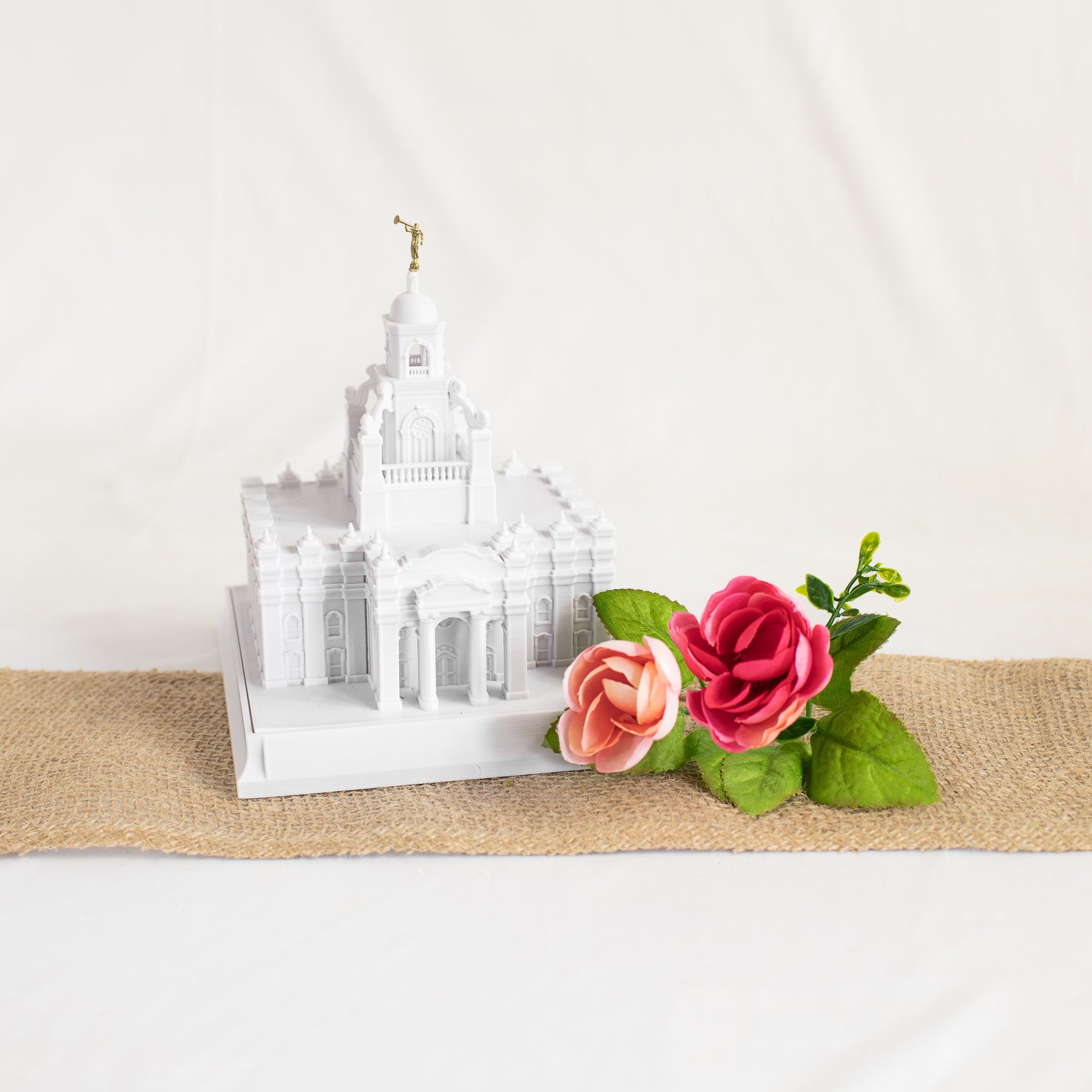 As designed, this temple does not feature the Angel Moroni Statue and a miniature replica will not be included with your order.