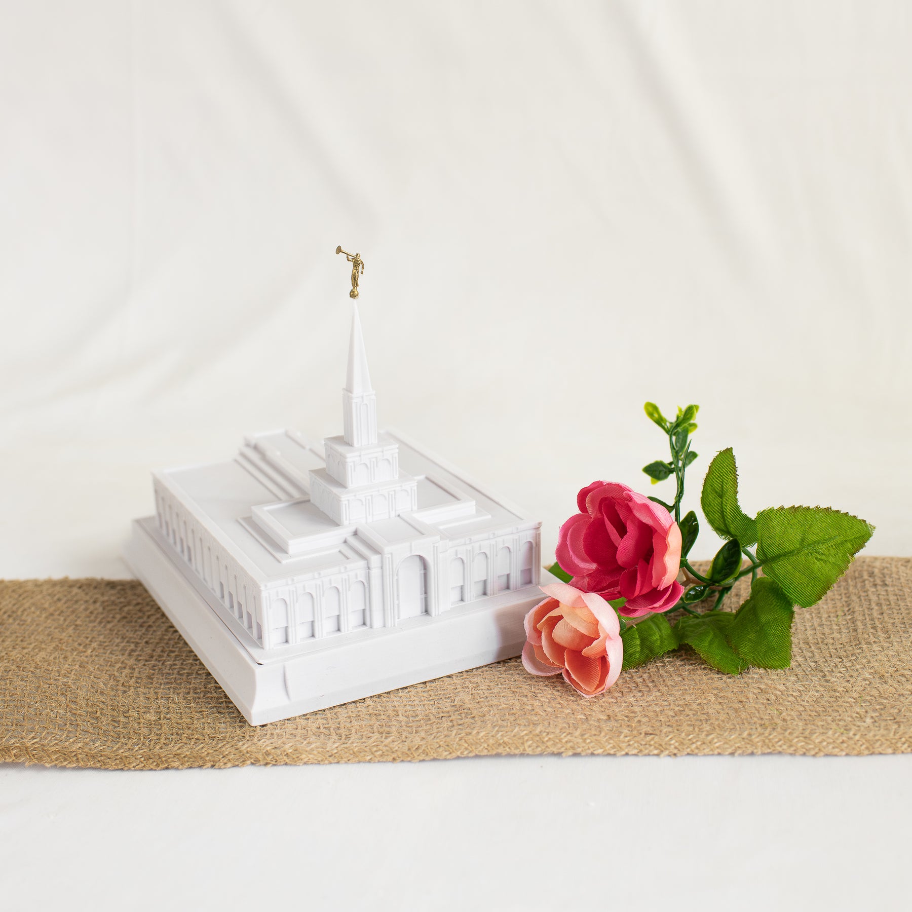 As designed, this temple features an Angel Moroni Statue and a miniature Angel Moroni will be included with your order of a medium, large, or extra large replica, or a music light. Small replicas are too small to successfully attach the miniature Angel Moroni.