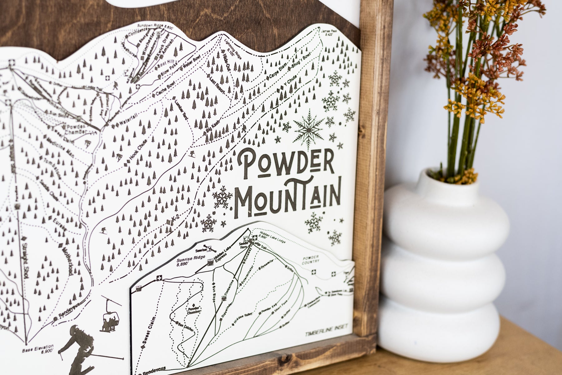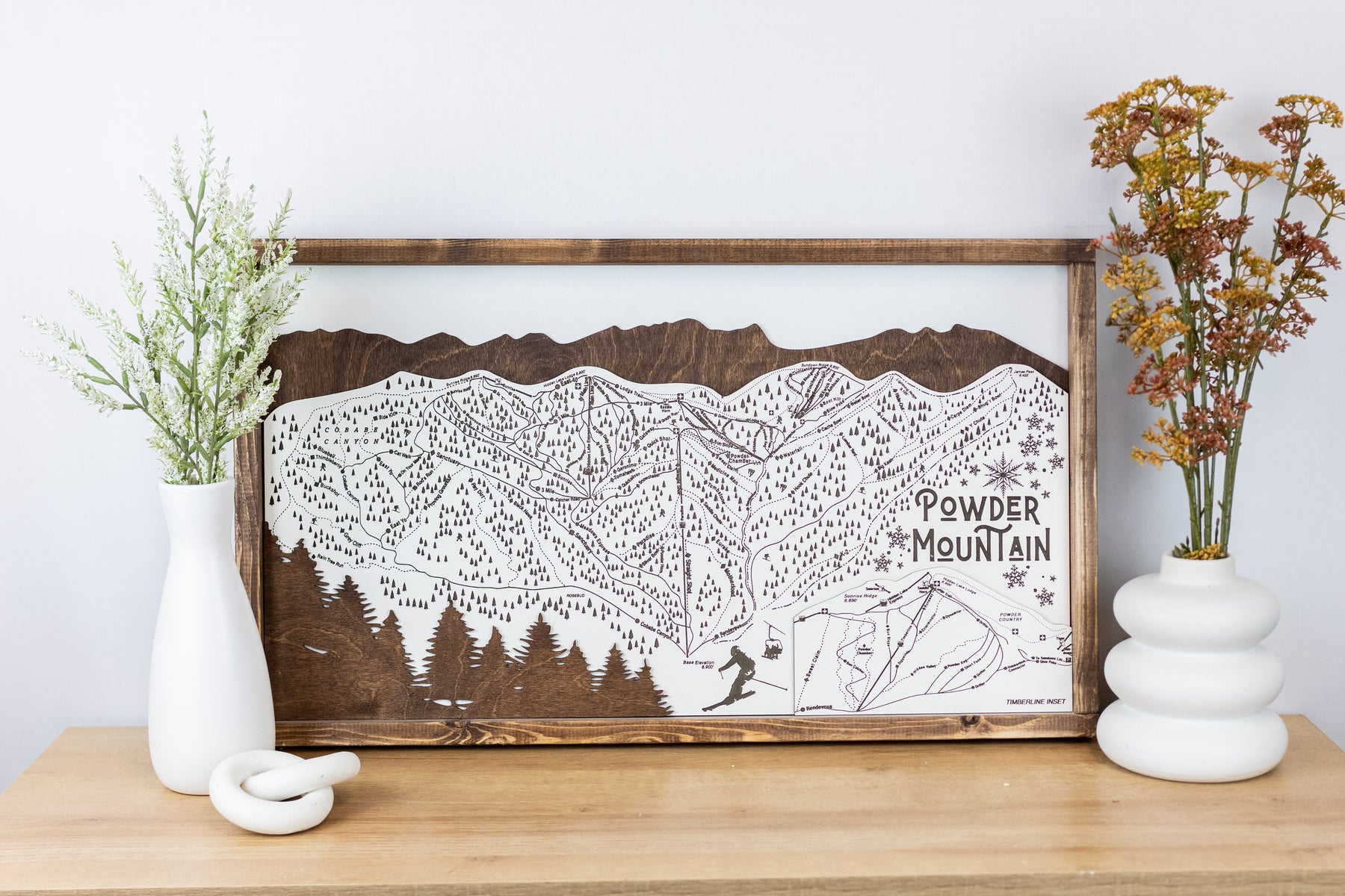 Perfect for any ski lodge, cabin, or home, this unique piece of ski decor makes an excellent gift for skiers, snowboarders, and outdoor enthusiasts who love deep powder and endless terrain at Powder Mountain.