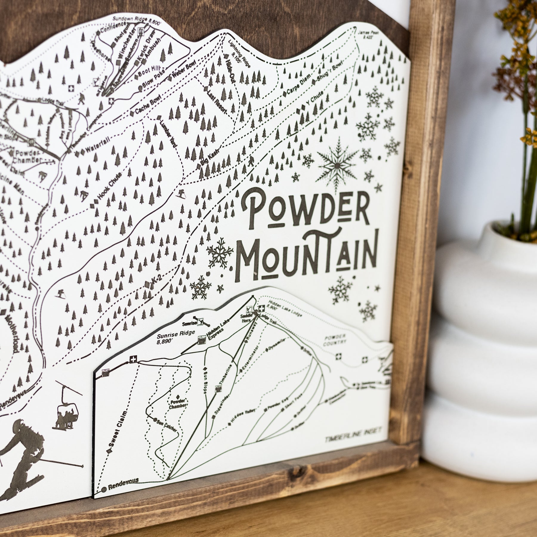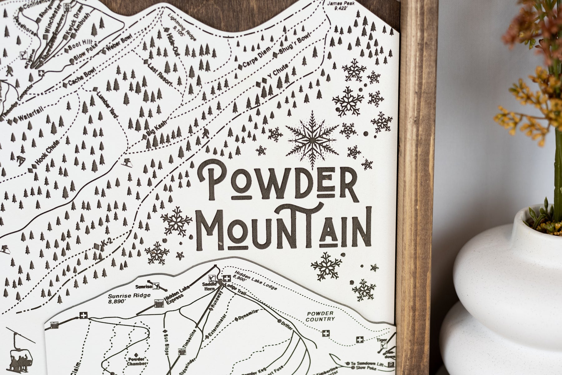 Showcase the rugged beauty of Powder Mountain Ski Resort with this laser-engraved wooden ski trail map, a detailed tribute to one of Utah’s most beloved ski destinations. Featuring precise trail engravings, ski runs, lifts, and mountain peaks, this handcrafted wall sign brings the essence of Pow Mow into your space.