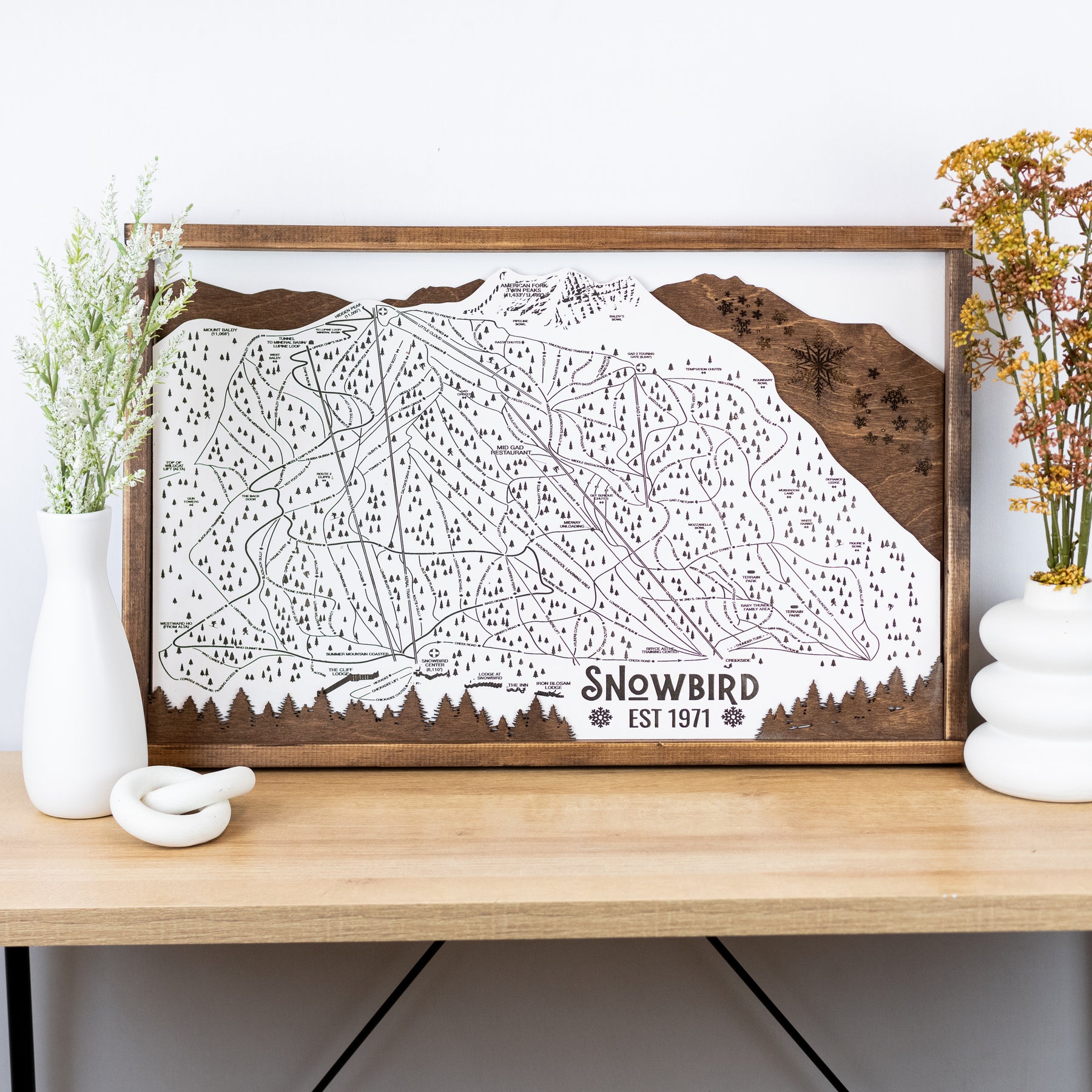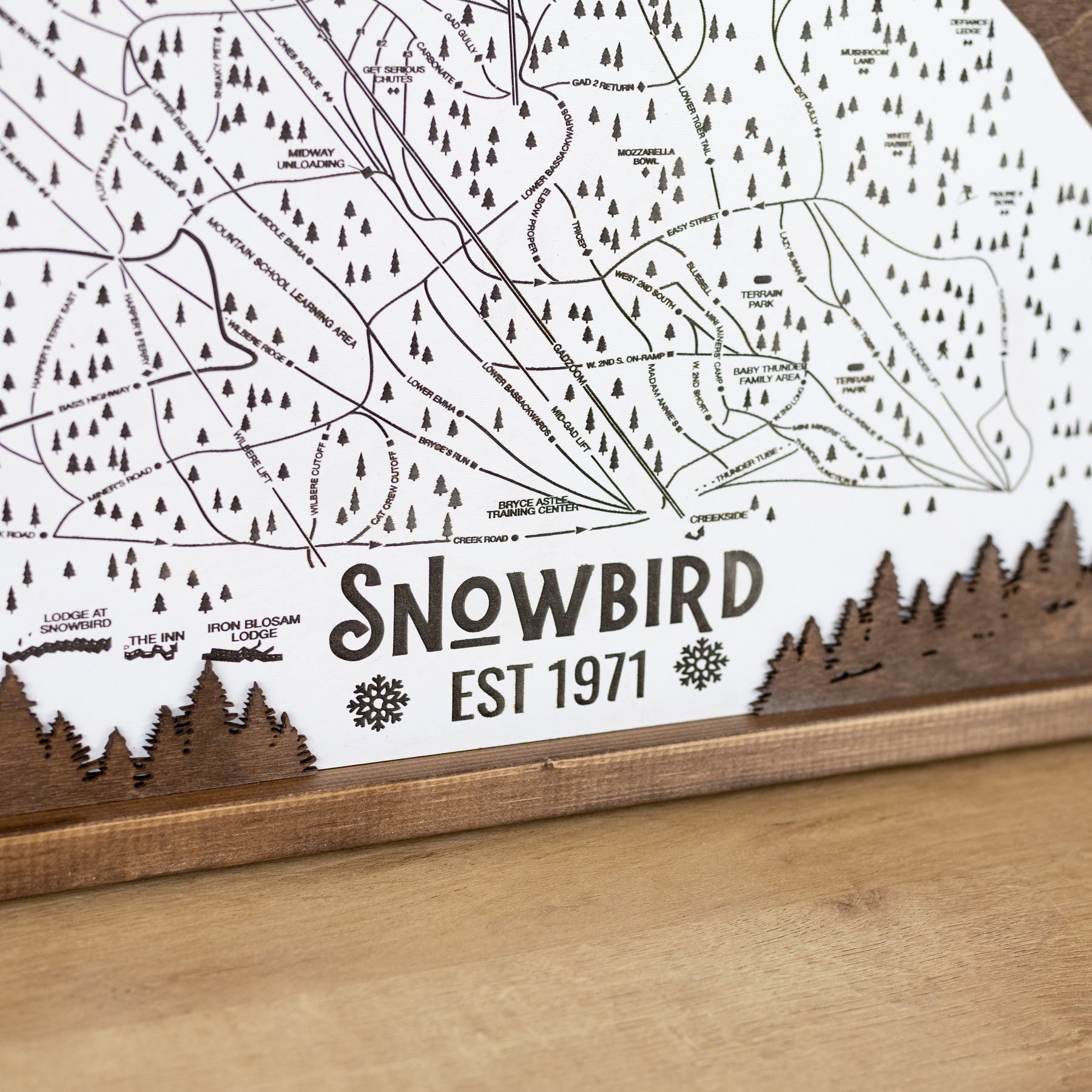 Capture the beauty and thrill of Snowbird Ski Resort with this laser-engraved wood map, a stunning tribute to one of Utah’s most iconic ski destinations. Featuring a detailed trail map, complete with ski runs, lifts, and natural landmarks, this handcrafted piece brings the mountain to life in a striking, artistic way.