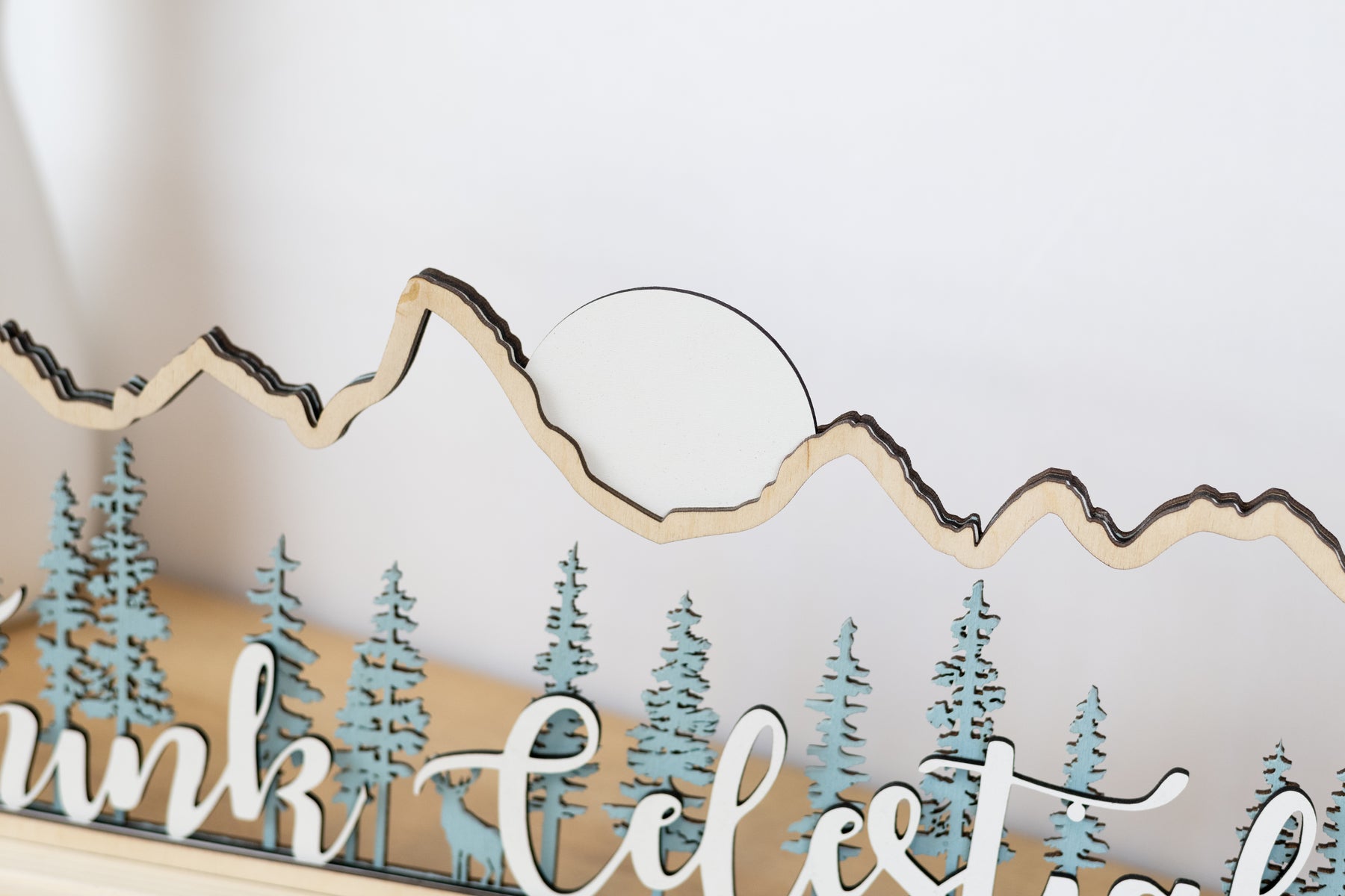 Teal backdrop: Teal backdrop trees with white and Baltic Birch layered trees
