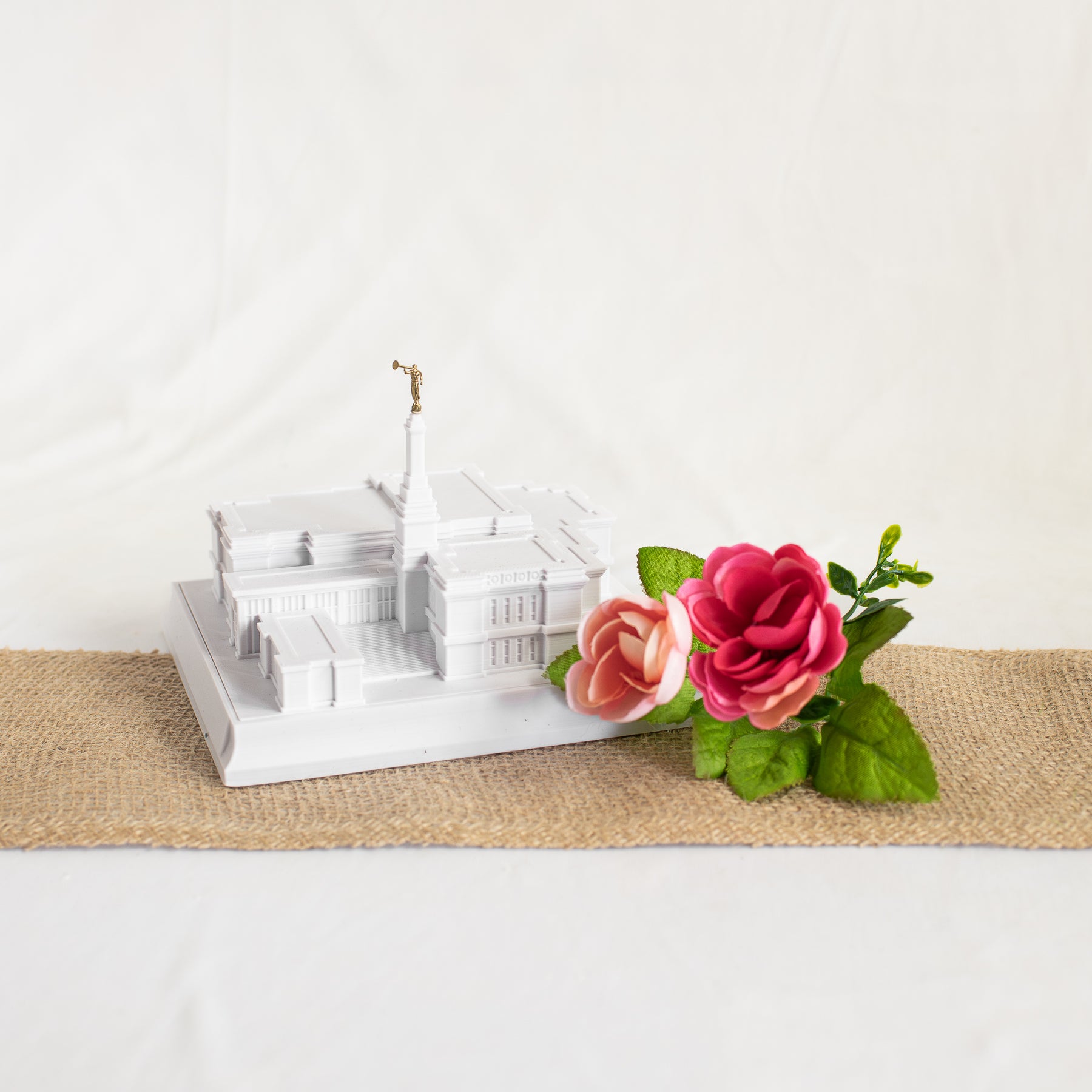 As designed, this temple features an Angel Moroni Statue and a miniature Angel Moroni will be included with your order of a medium, large, or extra large replica, or a music light. Small replicas are too small to successfully attach the miniature Angel Moroni.