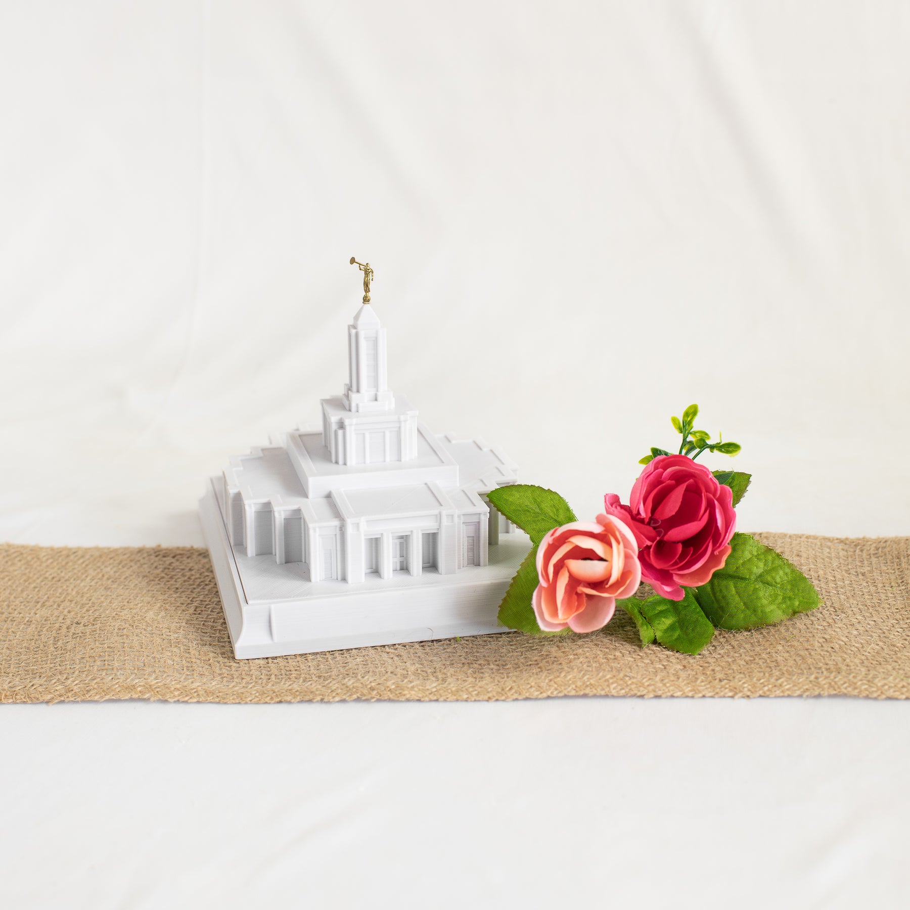 As designed, this temple features an Angel Moroni Statue and a miniature Angel Moroni will be included with your order of a medium, large, or extra large replica, or a music light. Small replicas are too small to successfully attach the miniature Angel Moroni.