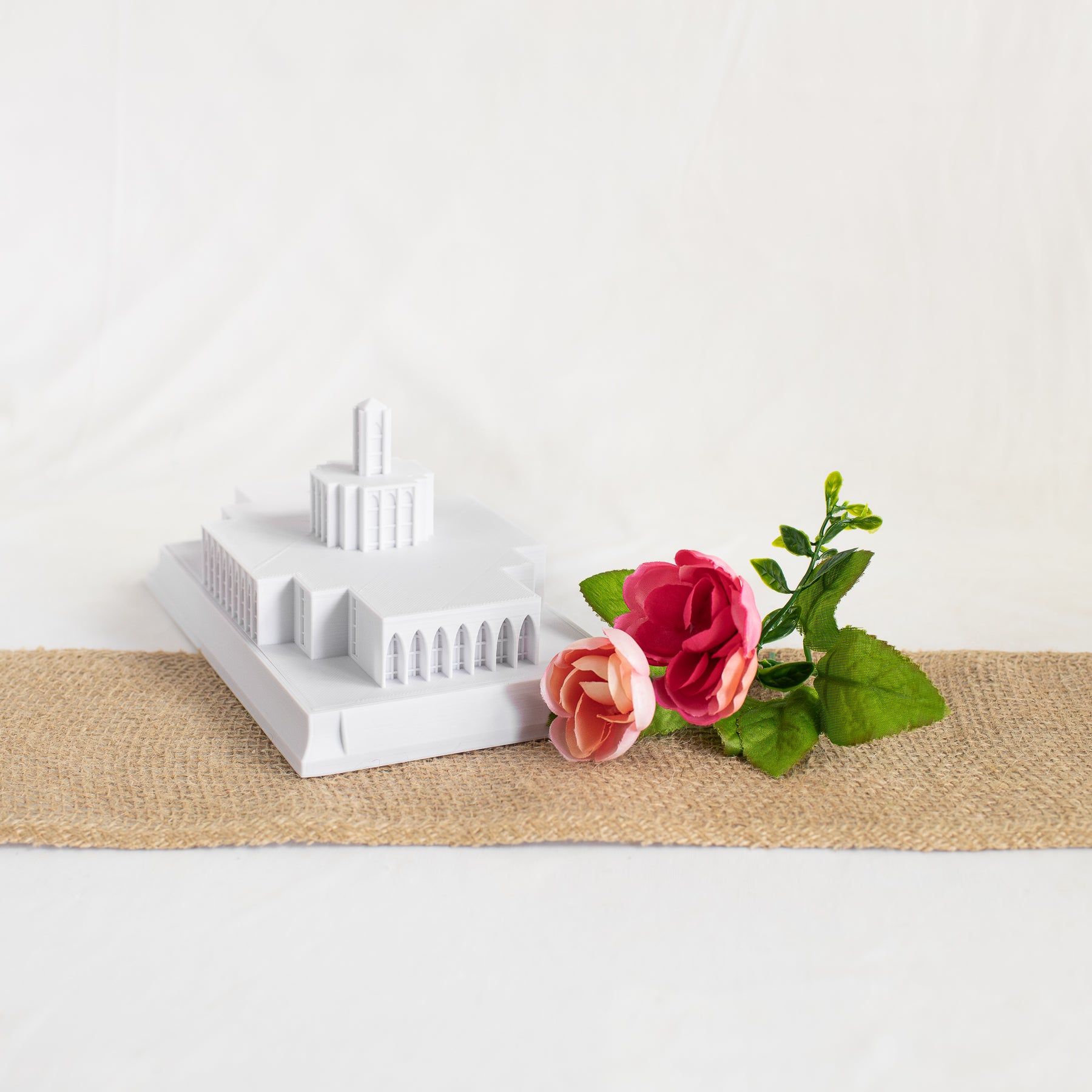Each temple replica is 3D printed with a lightweight, but durable,  temple-white PLA plastic which captures unique details missed with other materials such ceramic, glass, porcelain.