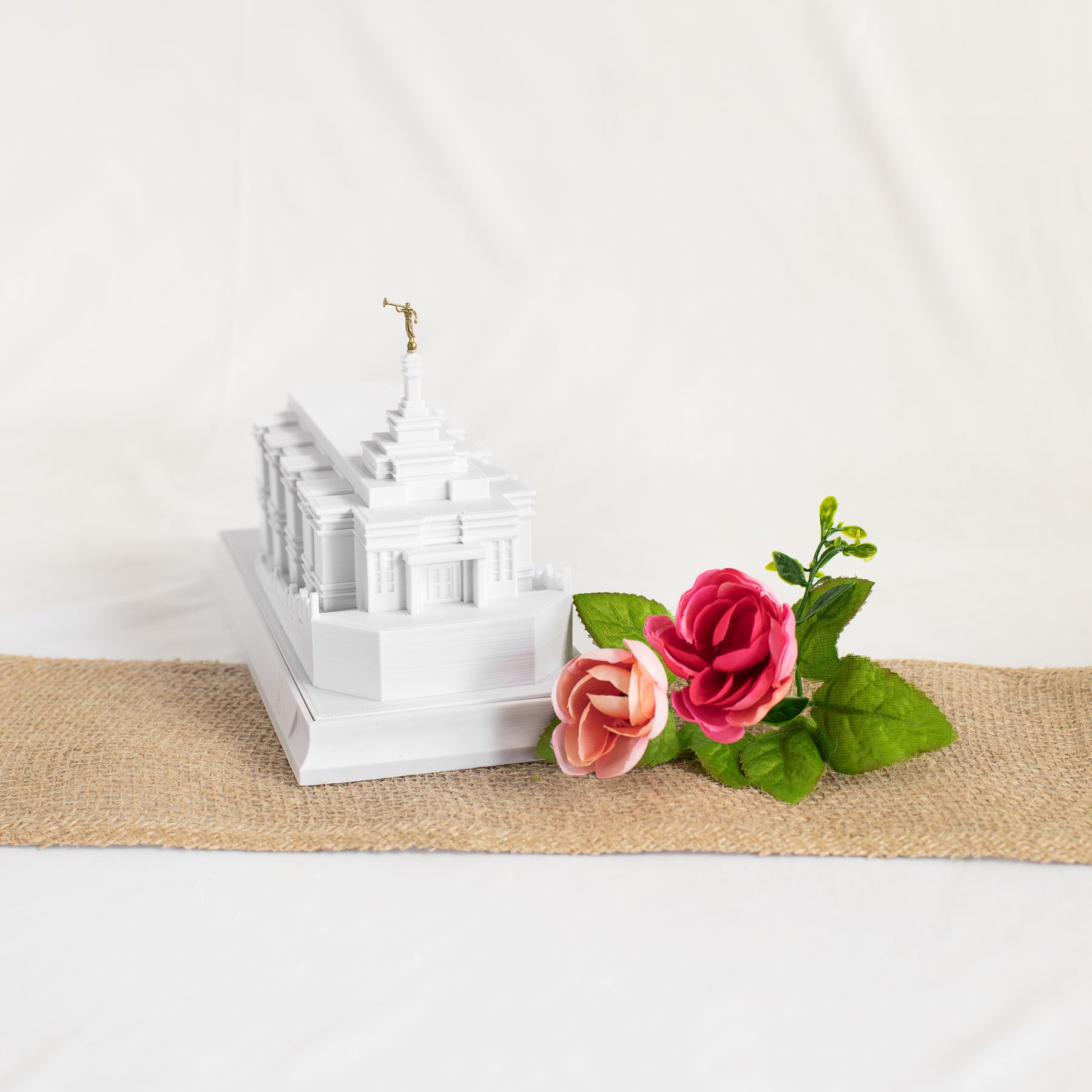 As designed, this temple features an Angel Moroni Statue and a miniature Angel Moroni will be included with your order of a medium, large, or extra large replica, or a music light. Small replicas are too small to successfully attach the miniature Angel Moroni.