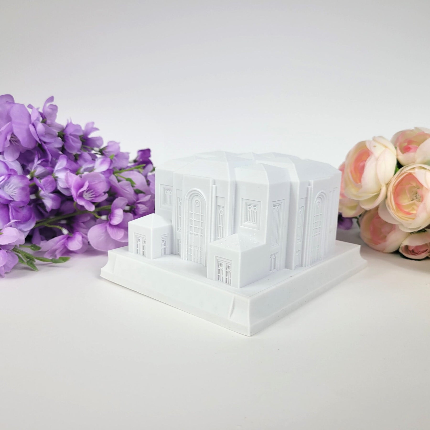 Each temple replica is 3D printed with a lightweight, but durable, temple-white PLA plastic which captures unique details missed with other materials such ceramic, glass, porcelain.