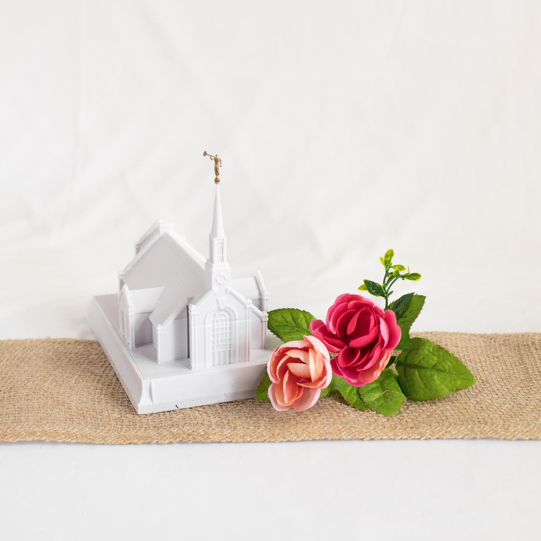 As designed, this temple features an Angel Moroni Statue and a miniature Angel Moroni will be included with your order of a medium, large, or extra large replica, or a music light. Small replicas are too small to successfully attach the miniature Angel Moroni.