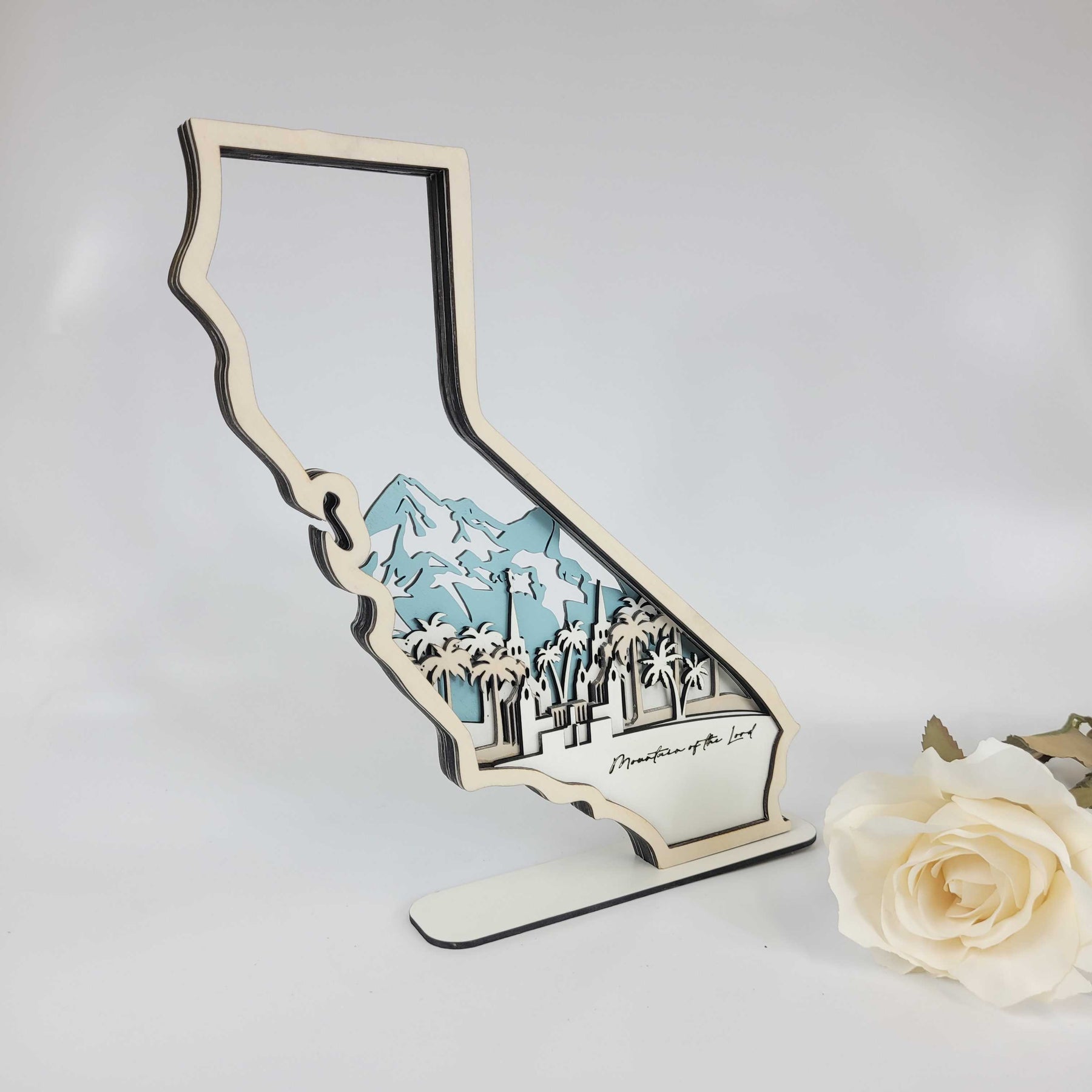 Details: We love our state and all that comes with it and we love our temple. We decided to bring the best of both worlds together in these Temple State Signs. The clean and natural design along with the symbol of the temple brightens the room its placed.