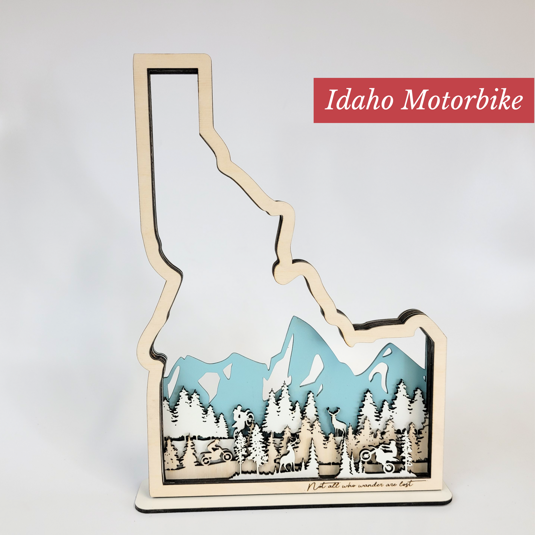 Made from 3-layers of 1/8" Baltic Birch and 3-layers of Eucalyptus White Hardboard. The mountains are painted a teal accent to complement the natural wood frame.