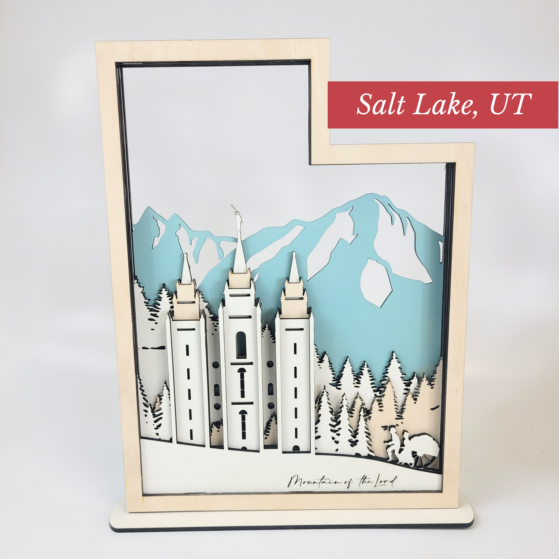 We love our state and all that comes with it and we love our temple. We decided to bring the best of both worlds together in these Temple State Signs. The clean and natural design along with the symbol of the temple brightens the room its placed.